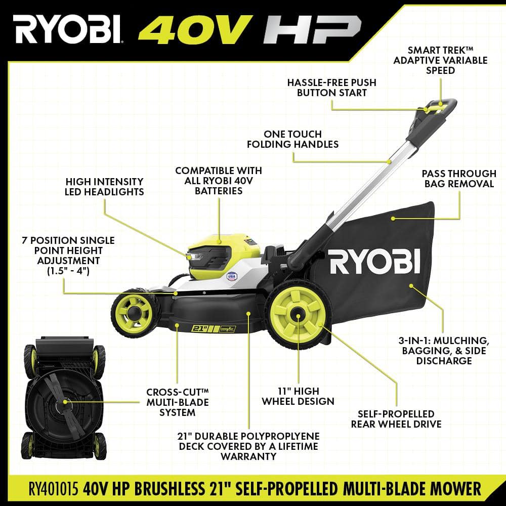 Elevate your lawn care routine and experience gas-like power with the RYOBI 40V Cordless Self-Propelled Lawn Mower today!