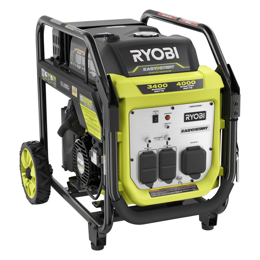 Delivering 4000 starting watts and 3400 running watts, this RYOBI gasoline-powered digital inverter generator provides clean, reliable power for job sites, camping, and backup. EasyStart technology and built-in CO Detect monitoring offer safer, simpler operation in a portable, wheeled design.