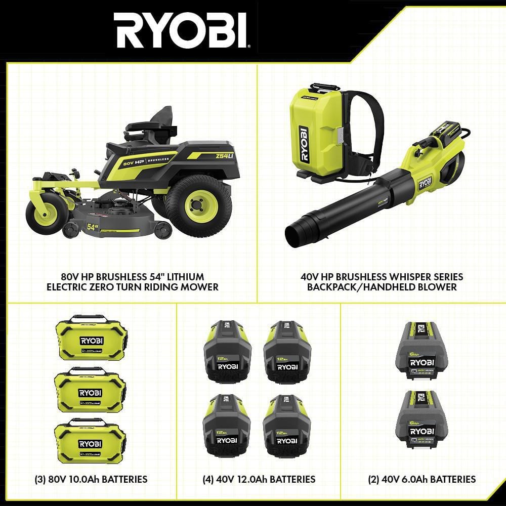 RYOBI 54" 80V Brushless Electric Zero Turn Mower Set