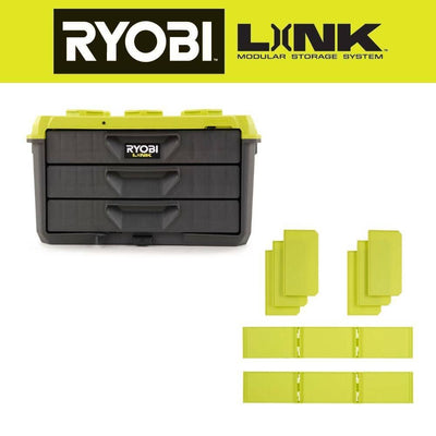 The RYOBI LINK 3-Drawer Tool Box is a robust storage solution perfect for both professionals and DIY enthusiasts. Featuring a 40-pound load capacity and impact-resistant materials, this tool box is designed for durability and convenience. Its customization-friendly dividers and seamless integration with the RYOBI LINK Modular Storage System ensure organized and secure tool storage.