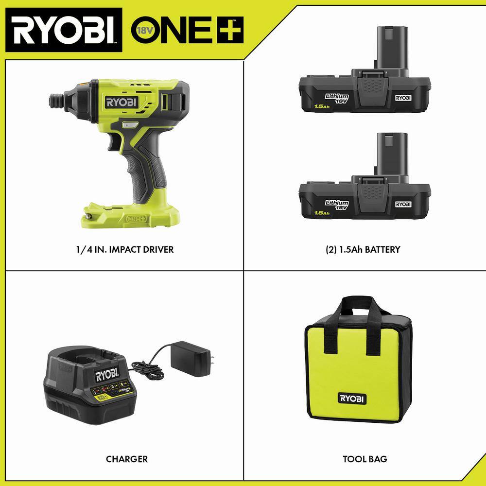 Power through fastening tasks with the RYOBI ONE+ 18V impact driver delivering up to 1,800 in-lbs of torque and 2,800 RPM. This kit includes two 1.5 Ah lithium-ion batteries, a charger, and a carry bag for ready-to-go convenience on DIY projects.