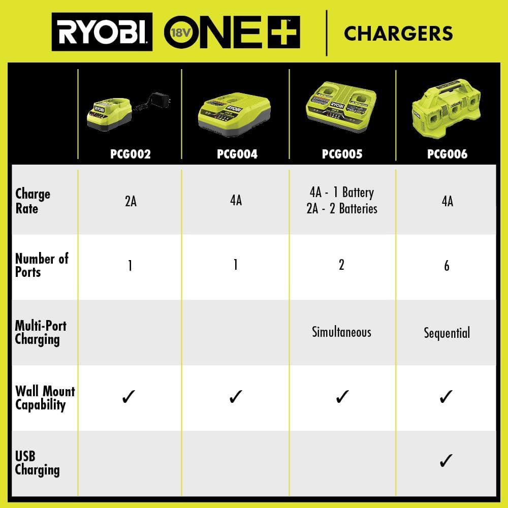 Stay powered up and efficient; order your RYOBI ONE+ 18V 6-Port Fast Charger and Battery Set today and keep your tools ready for any challenge.
