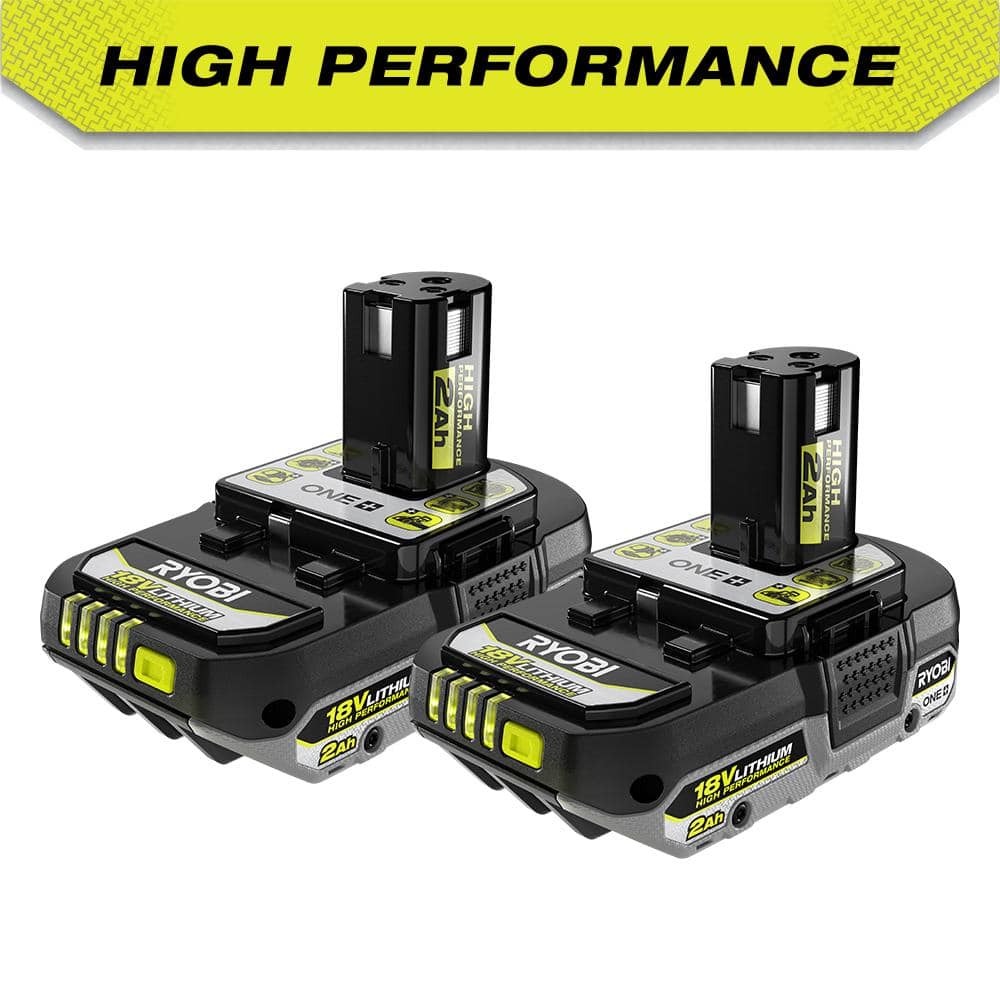 Q: What kind of batteries does this kit use? A: The kit includes two 1.5 Ah and two 2.0 Ah HIGH PERFORMANCE 18V Lithium-Ion batteries, which are part of the RYOBI ONE+ system.