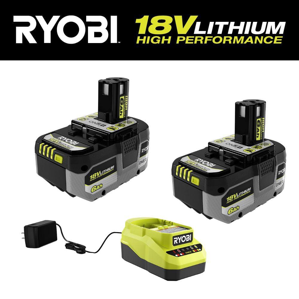 Power your tools with the versatile RYOBI ONE+ 18V Lithium-Ion Charger and Battery 2-Pack, which charges quickly and efficiently. These high-performance batteries are part of the expansive ONE+ system, compatible with over 300 RYOBI tools.