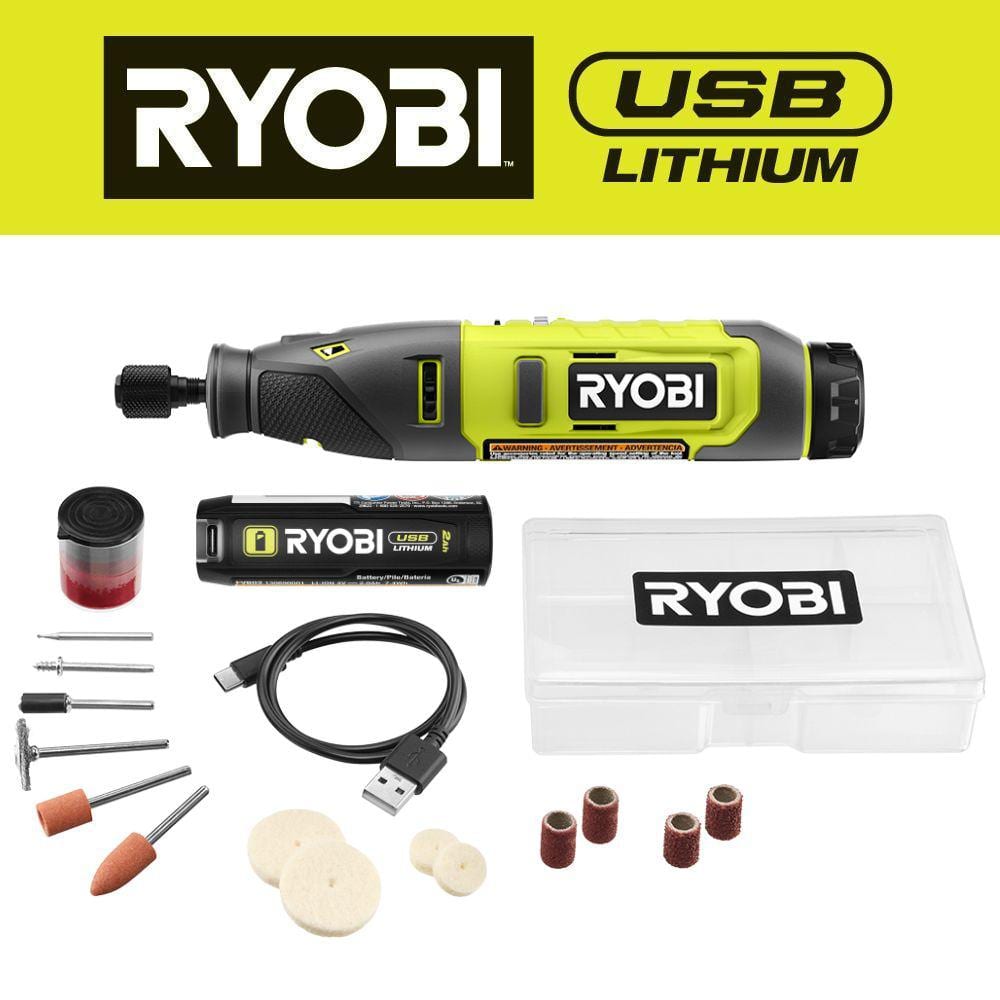 Enhance your tool collection with the RYOBI USB Lithium Rotary Tool Kit today and experience the perfect blend of power, precision, and portability.
