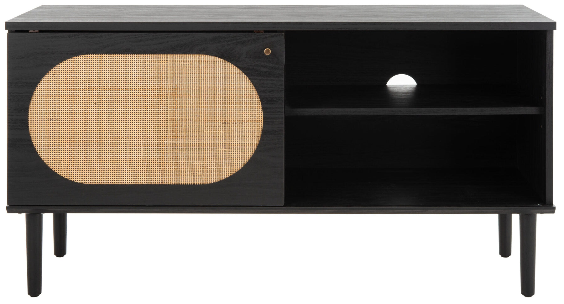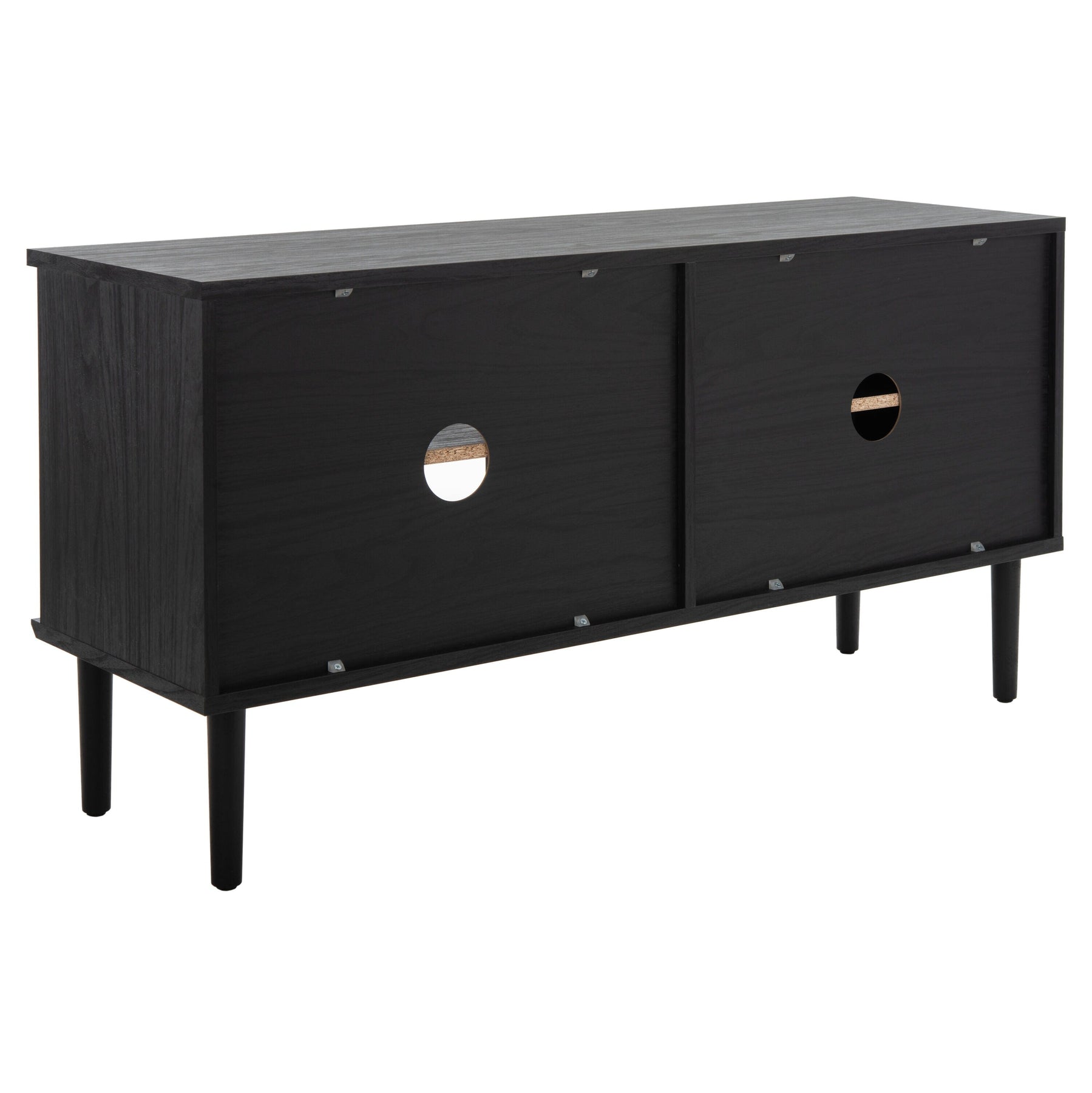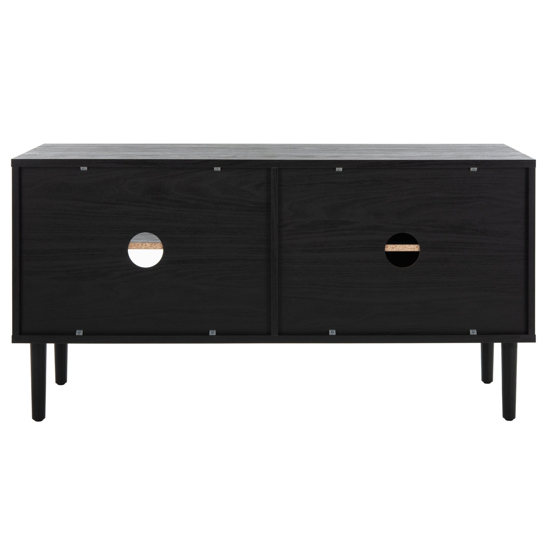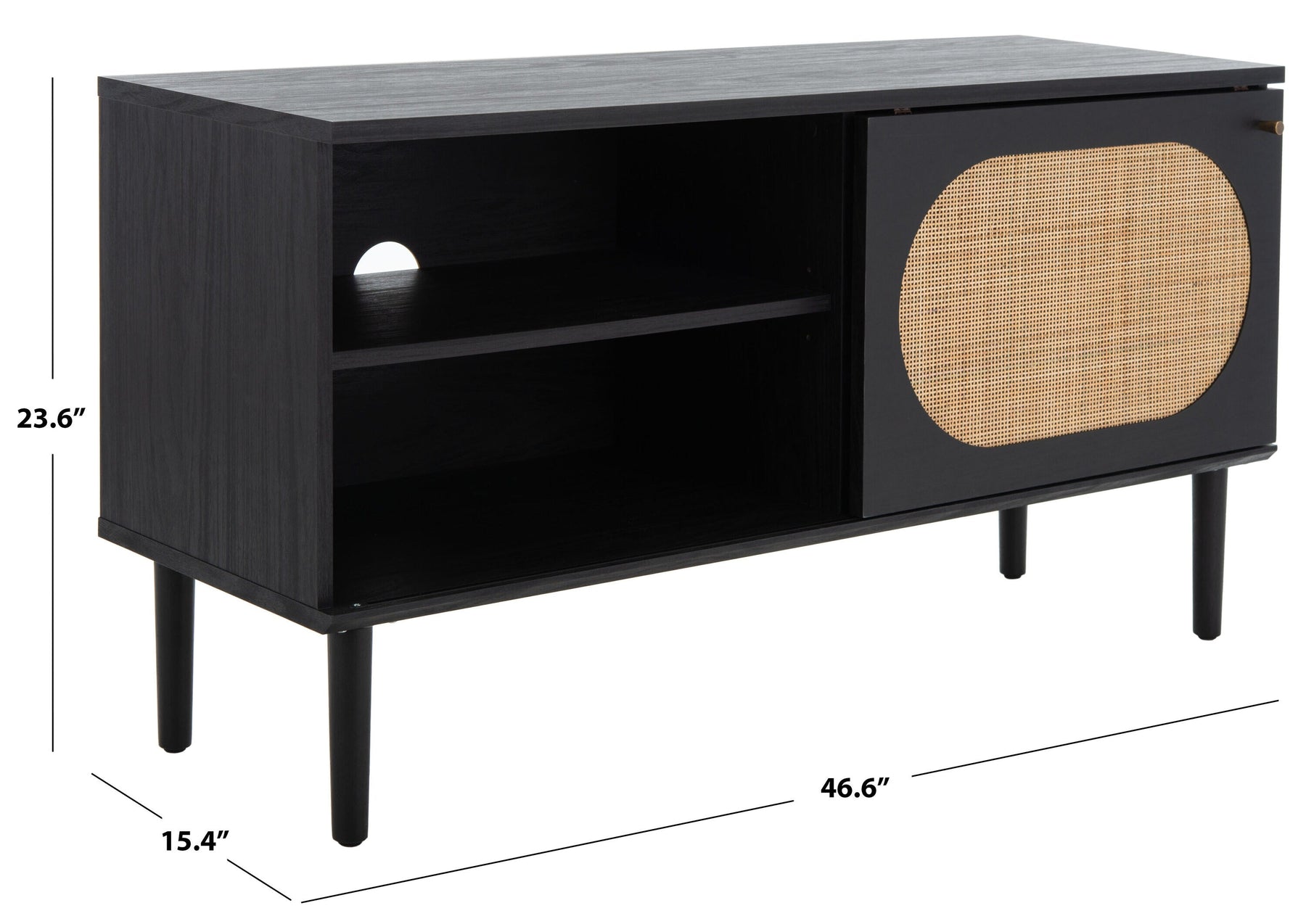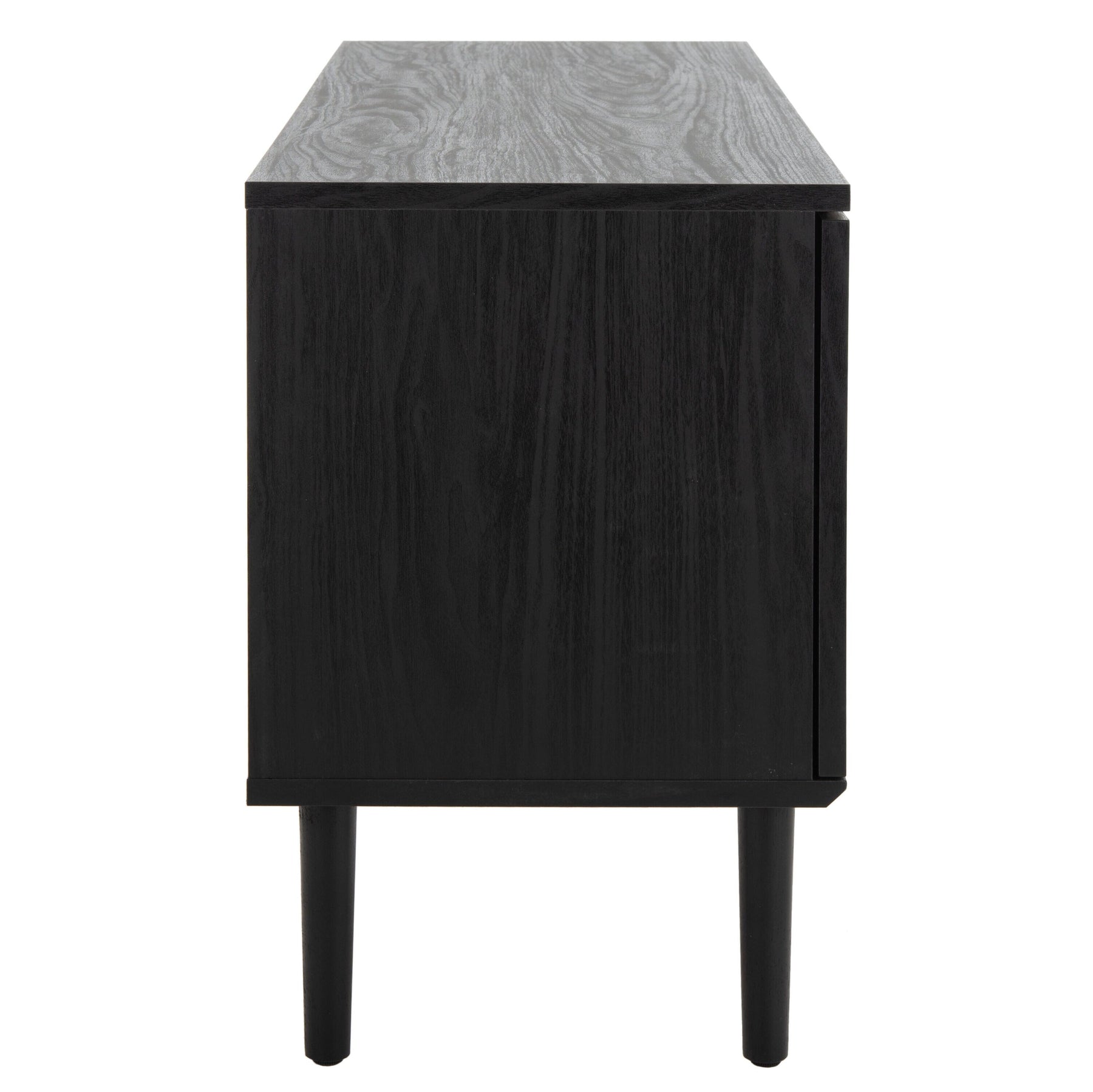 The Safavieh Claude Coastal Media Cabinet adds a touch of nautical elegance to any living space. Crafted from a sturdy combination of MDF and rattan with a sleek black finish, it offers ample storage with its sophisticated design. Ideal for those seeking both functionality and style, this cabinet is perfect for transforming your media room or living area.