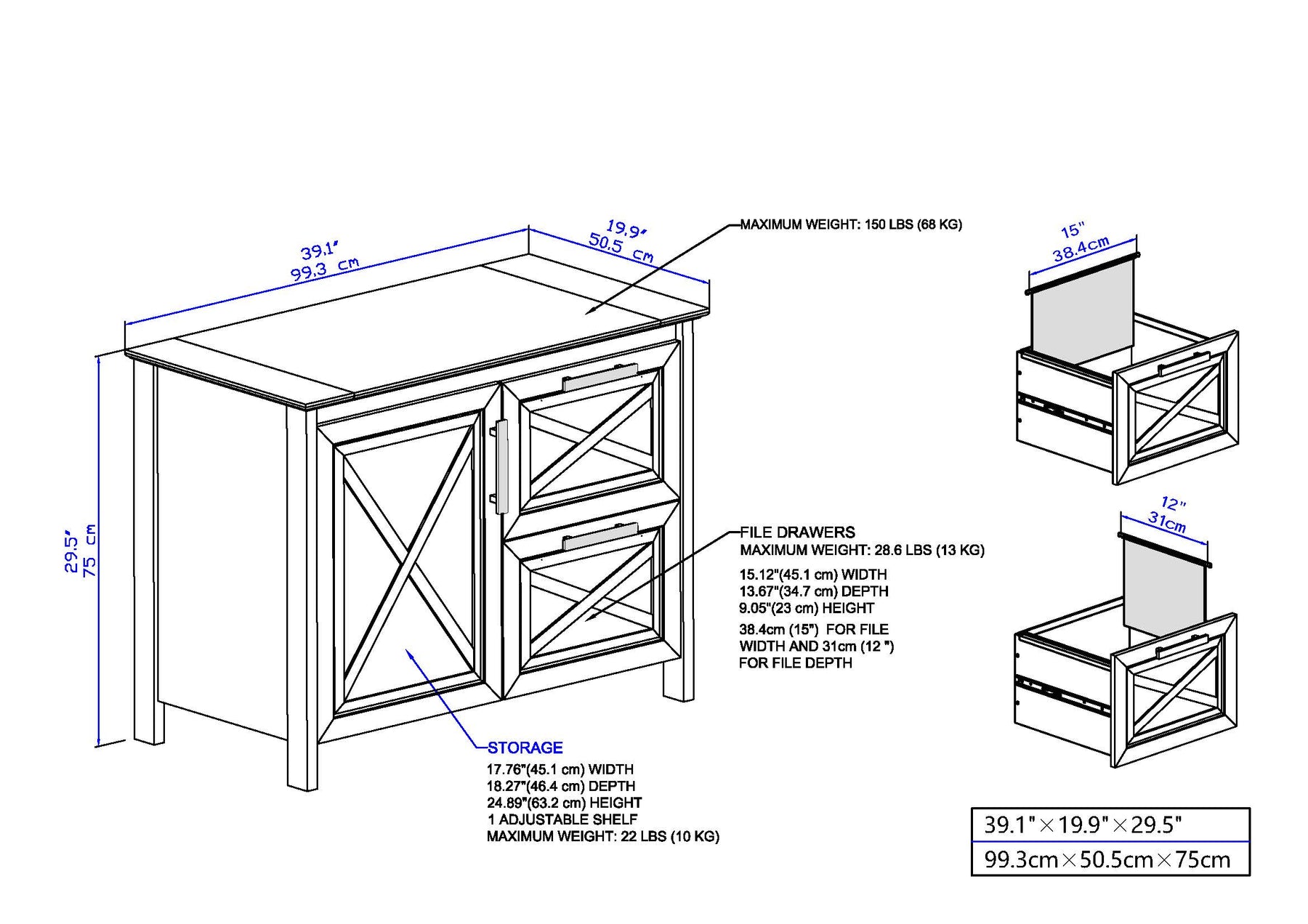 Ample Storage: Features two deep file drawers for organizing files and documents.