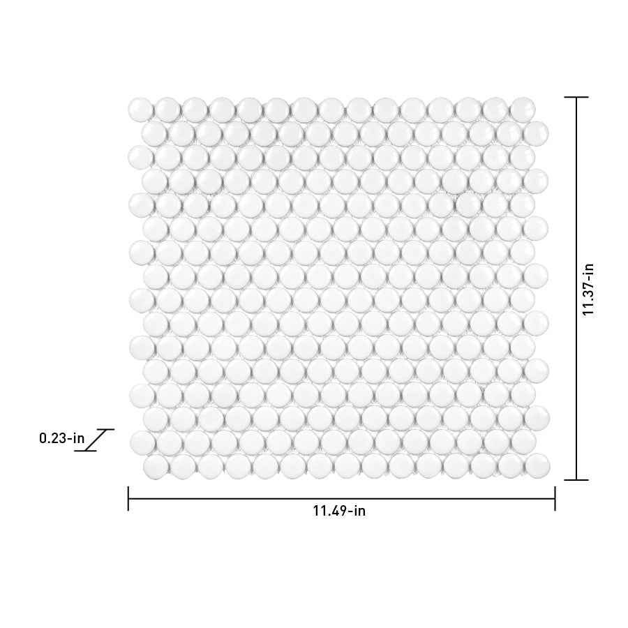 Transform your space with the Satori Hudson Glossy White Porcelain Mosaic Tile. Featuring timeless penny round design and an impeccable brilliant white glaze, this tile is the epitome of sophisticated elegance. Ideal for wet or dry indoor spaces, it’s durable, stain-resistant, and easy to maintain, perfect for both residential and commercial applications.