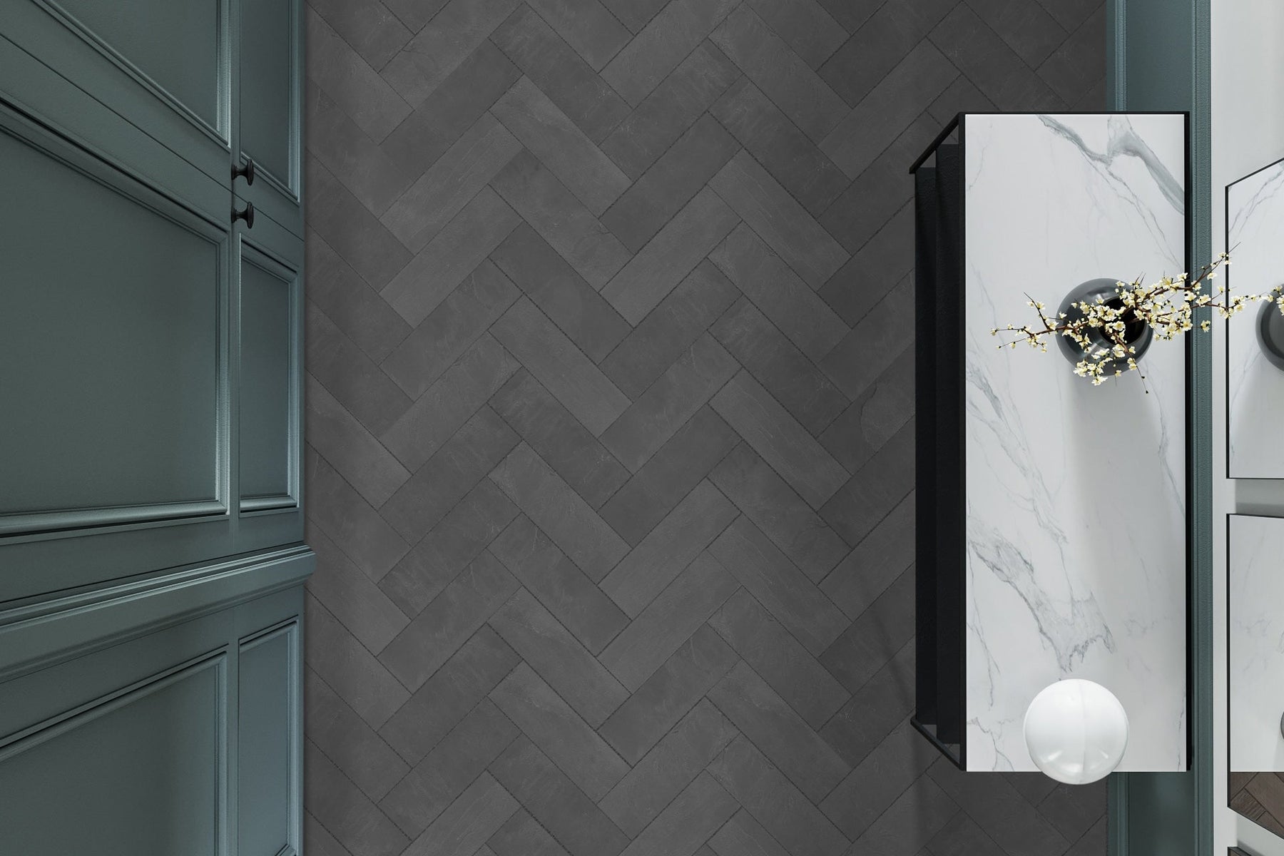 Transform your home with the refined elegance of the Satori Midnight Fog Slate Tile – order now to elevate your project with timeless beauty.