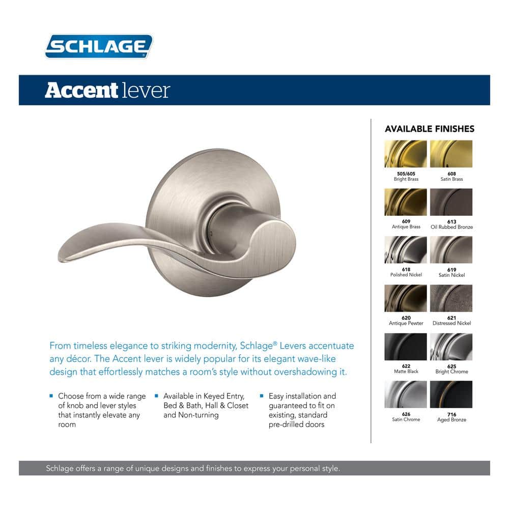 Elevate your doors with lasting style—add this Schlage Accent dummy lever to your cart today.