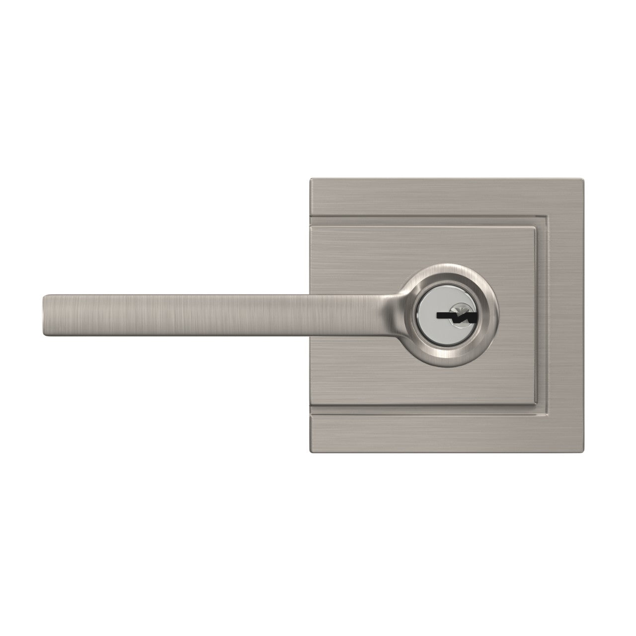 Modern and secure, the Schlage Latitude keyed entry lever with Upland trim brings crisp geometry and dependable protection to entry and side doors. Finished in Satin Nickel, it features premium metal construction and Grade 2/AAA BHMA certification for everyday durability.