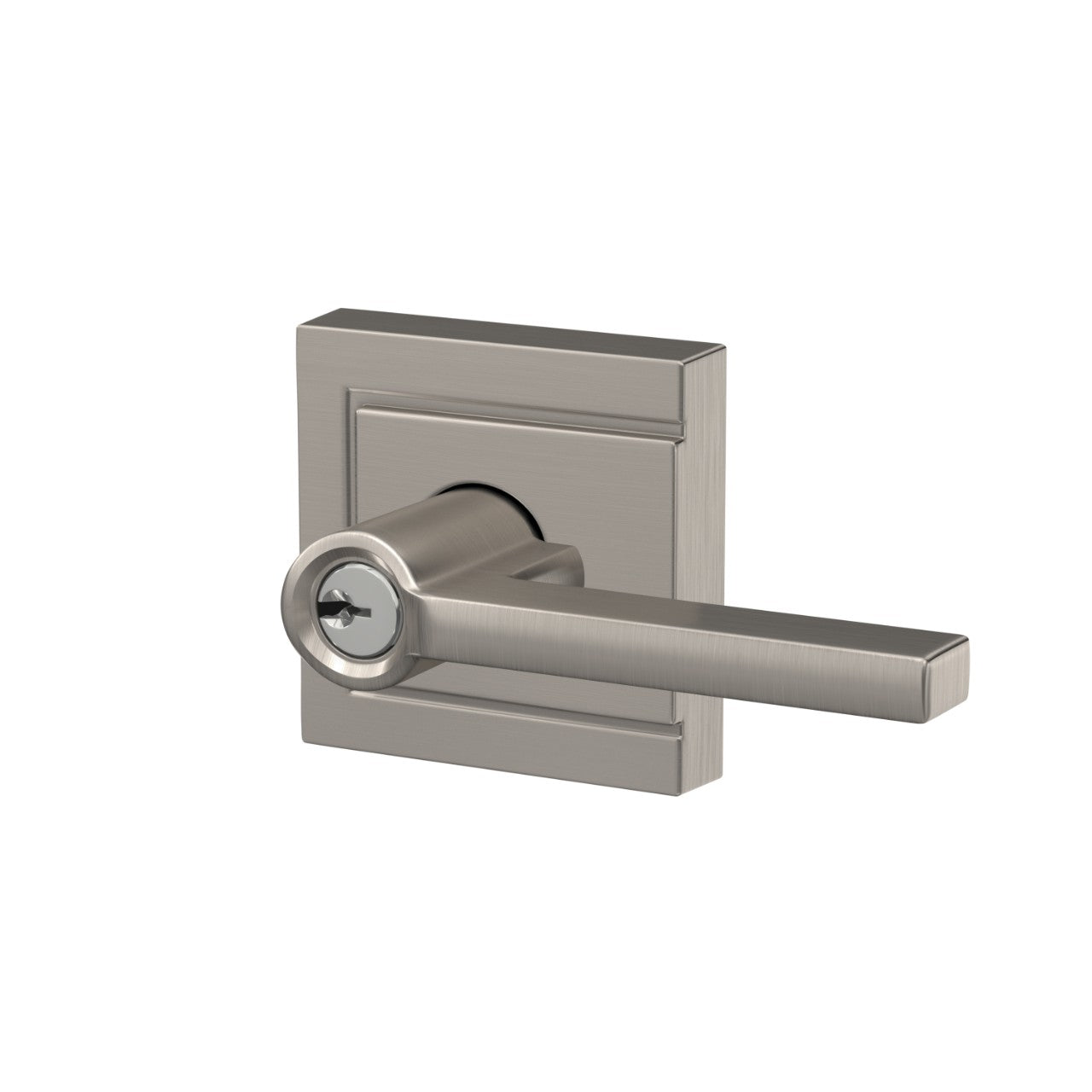 Schlage Latitude Keyed Entry Door Lever with Upland Trim, Satin Nickel