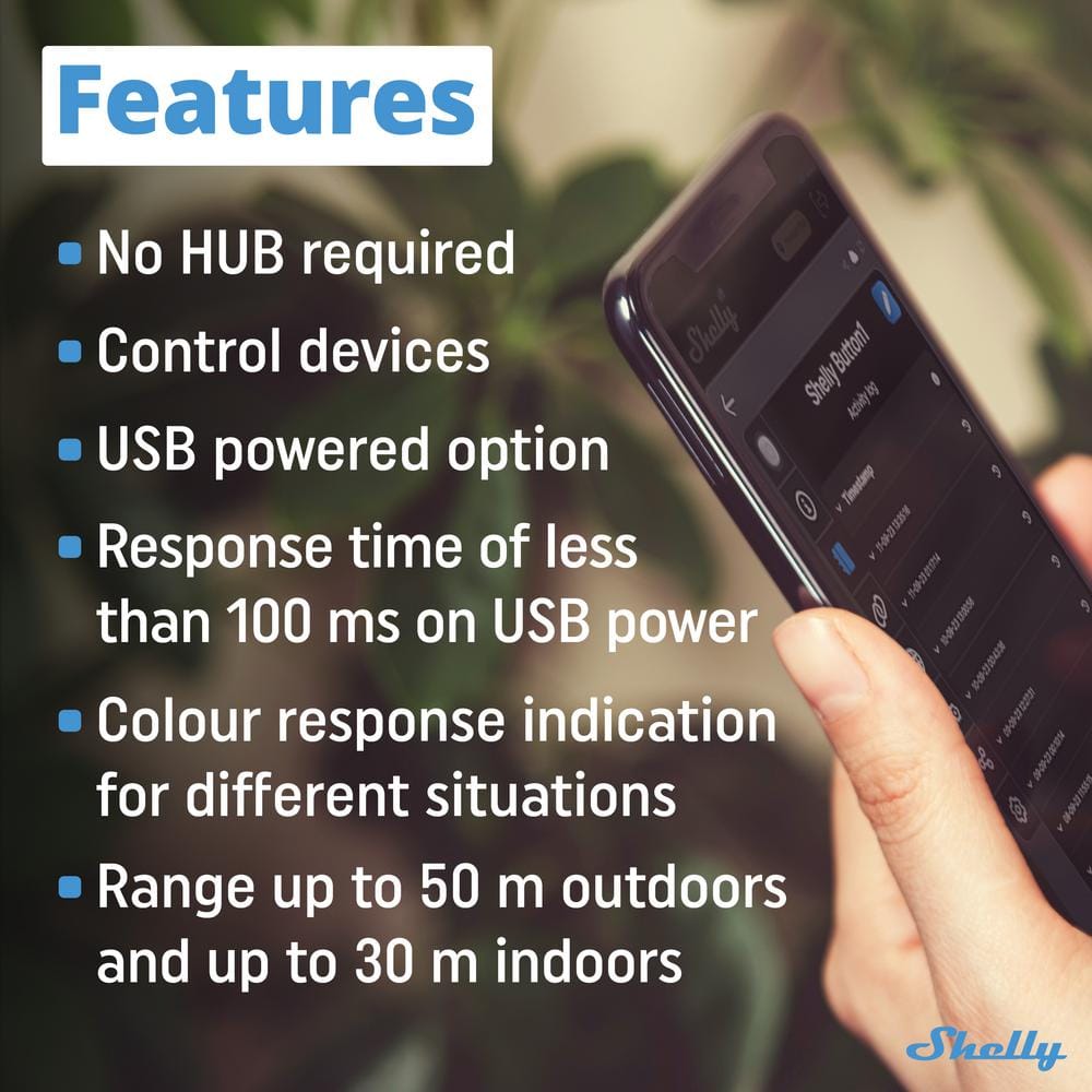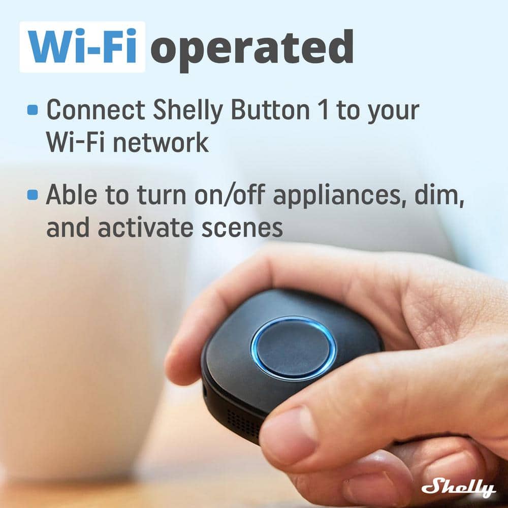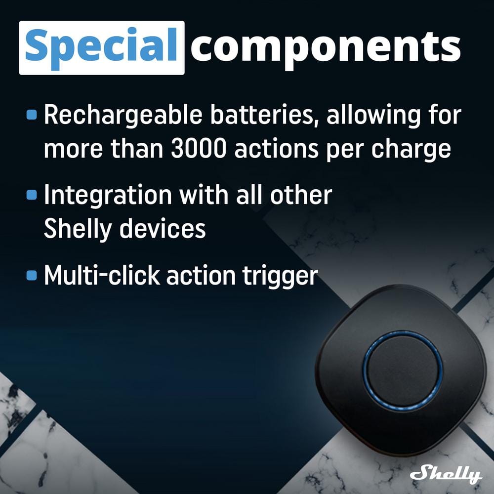 Q: How is the Shelly Button 1 powered? A: The Shelly Button 1 can operate on a rechargeable battery or via USB power for constant use.