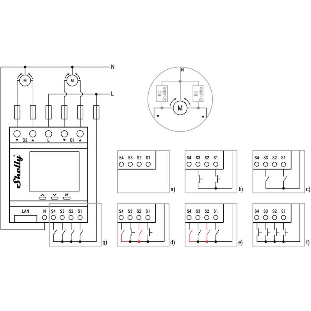 Streamline your home automation systems with the Shelly Pro Dual Cover Shutter Controller. This professional-grade smart device effortlessly manages roller shutters, blinds, and more with precision, supporting up to 16A per relay for substantial demand. Equipped with LAN, Wi-Fi, and Bluetooth capabilities, it integrates seamlessly into smart home setups, offering a blend of remote control, efficiency, and safety features.