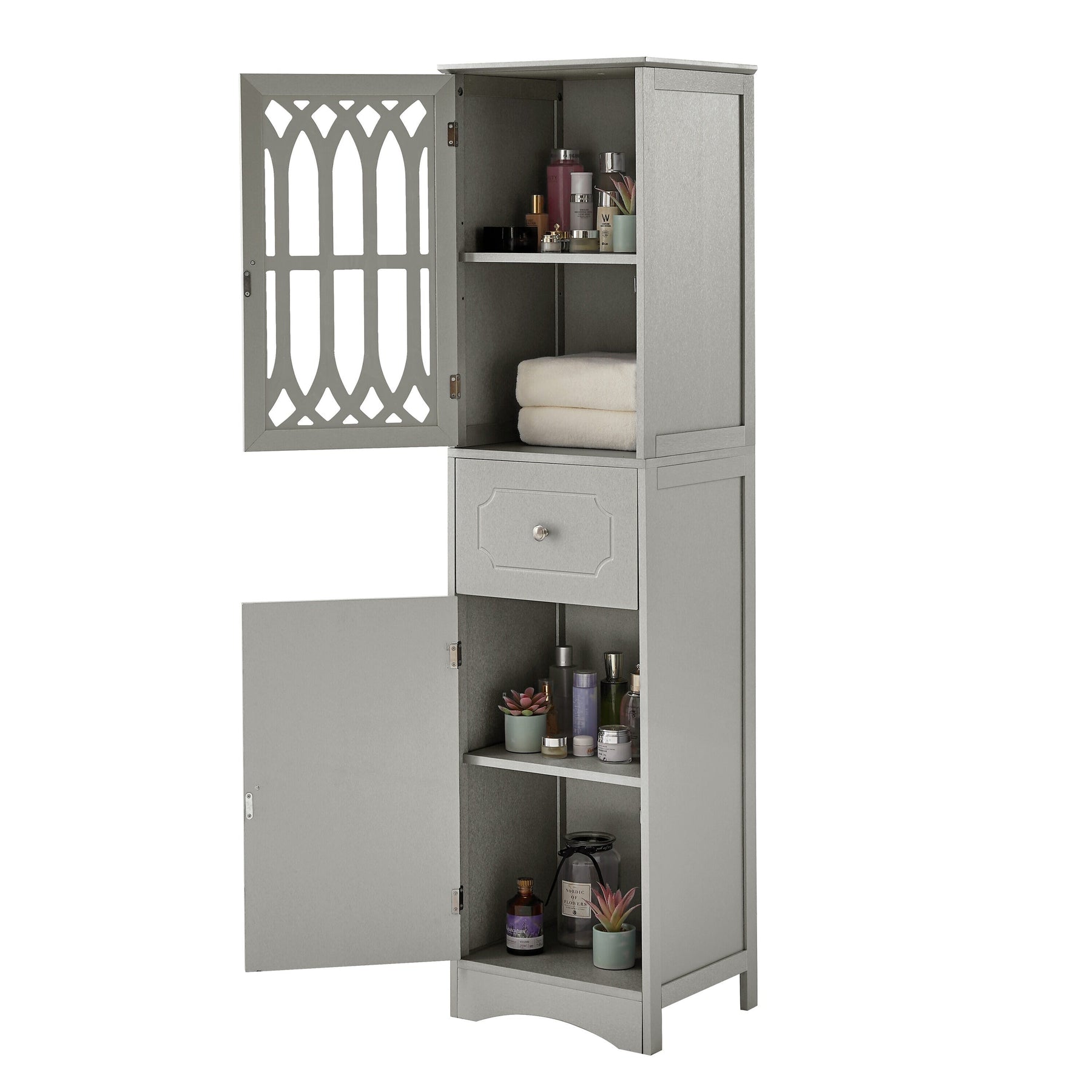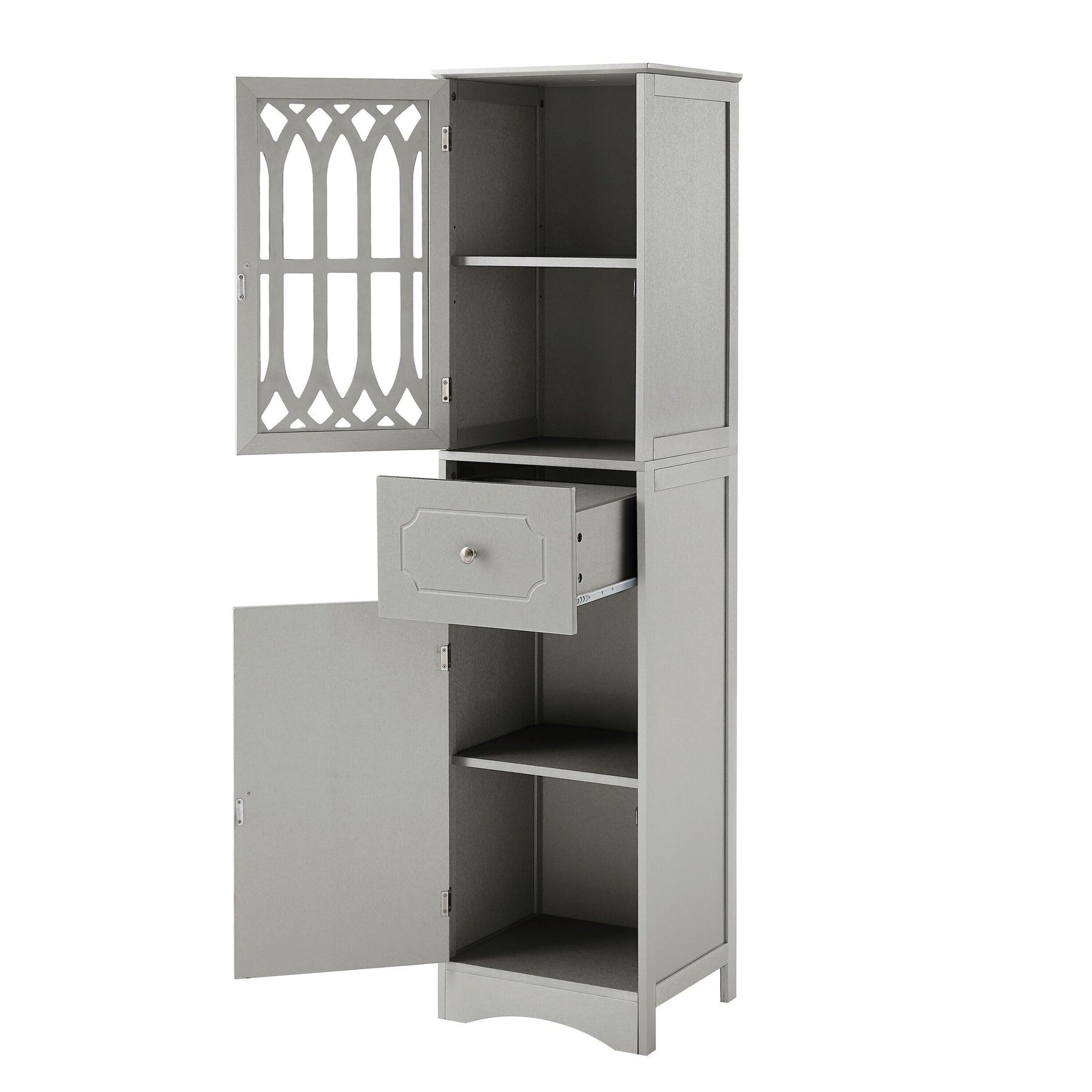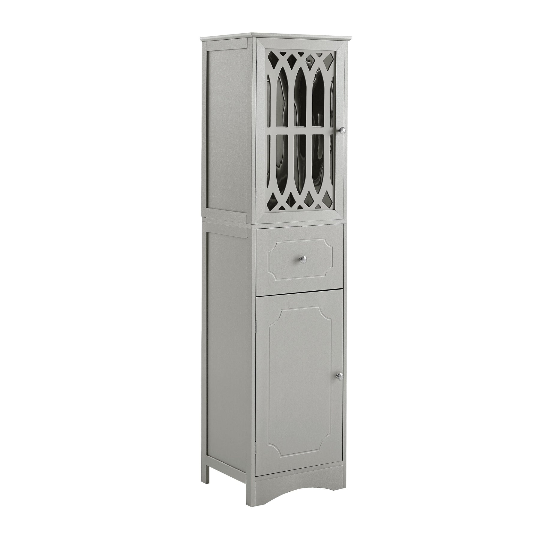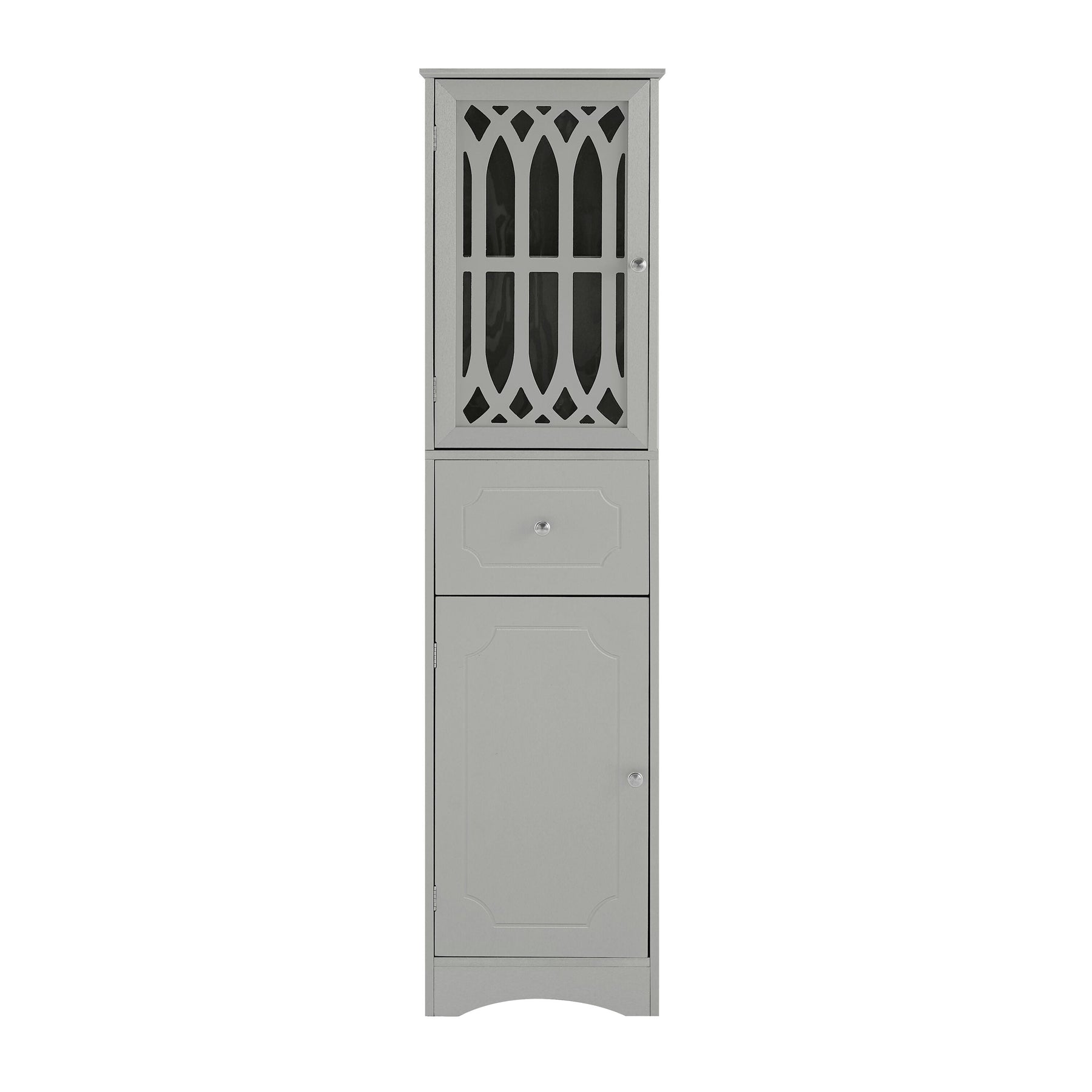 Transform your everyday spaces with the Siavonce Slim Grey Utility Cabinet, an exquisite blend of functionality and refined design. Its sleek profile and elegant curves evoke a sense of serenity and order, making it a statement piece in any room. The integrated acrylic panels offer a peek of sophistication, perfect for showcasing artisan towels or delicate décor. Place this versatile cabinet in a chic powder room or as a subtle organizer in your urban laundry — a testament to luxurious, understated living.