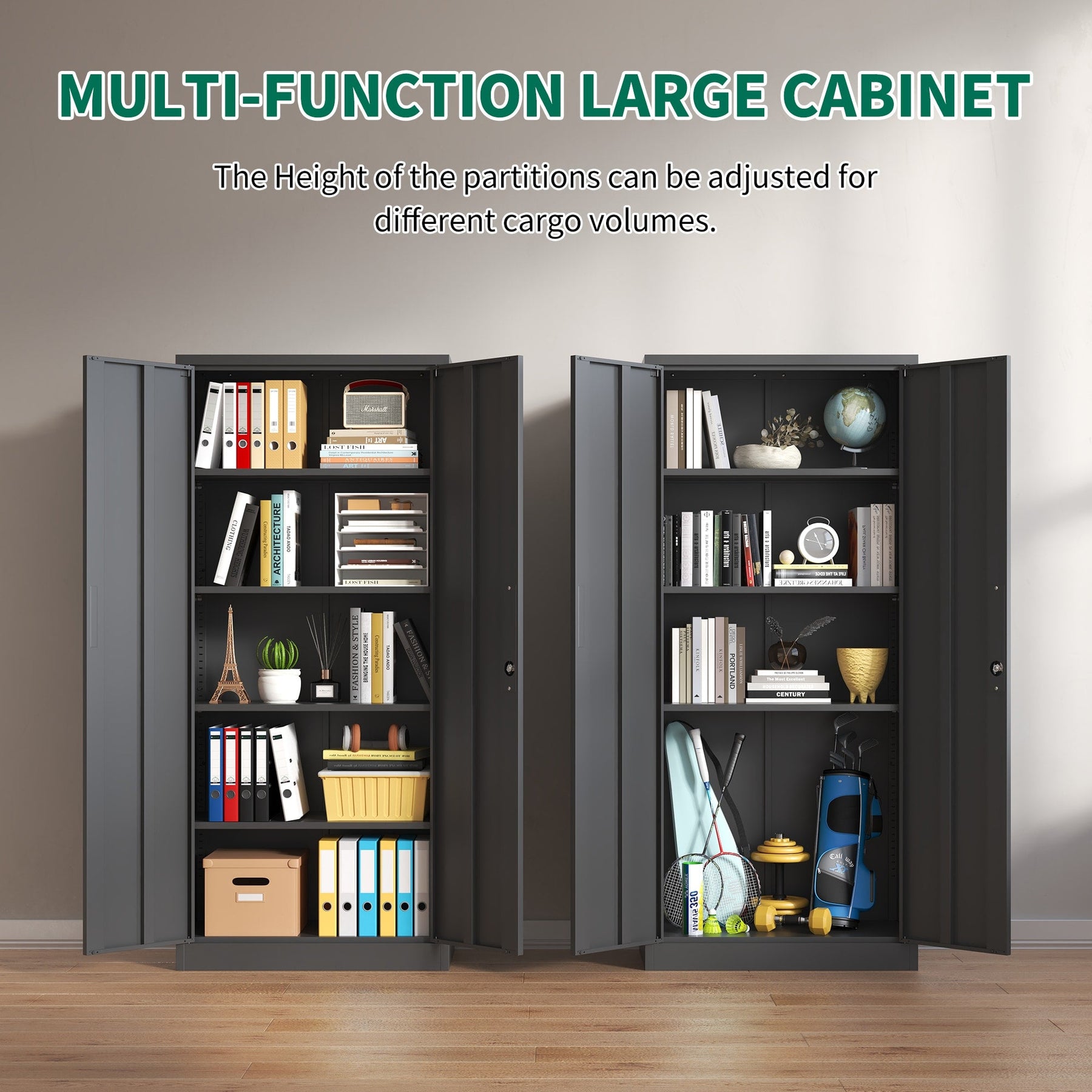 Elevate your organization game with the Siavonce Secure 5-Shelf Metal Cabinet, designed for strength, versatility, and style in any space. Crafted from 100% cold-rolled steel, this cabinet features an upgraded locking system, adjustable shelves, and an anti-tipping design, making it ideal for both professional and personal use.