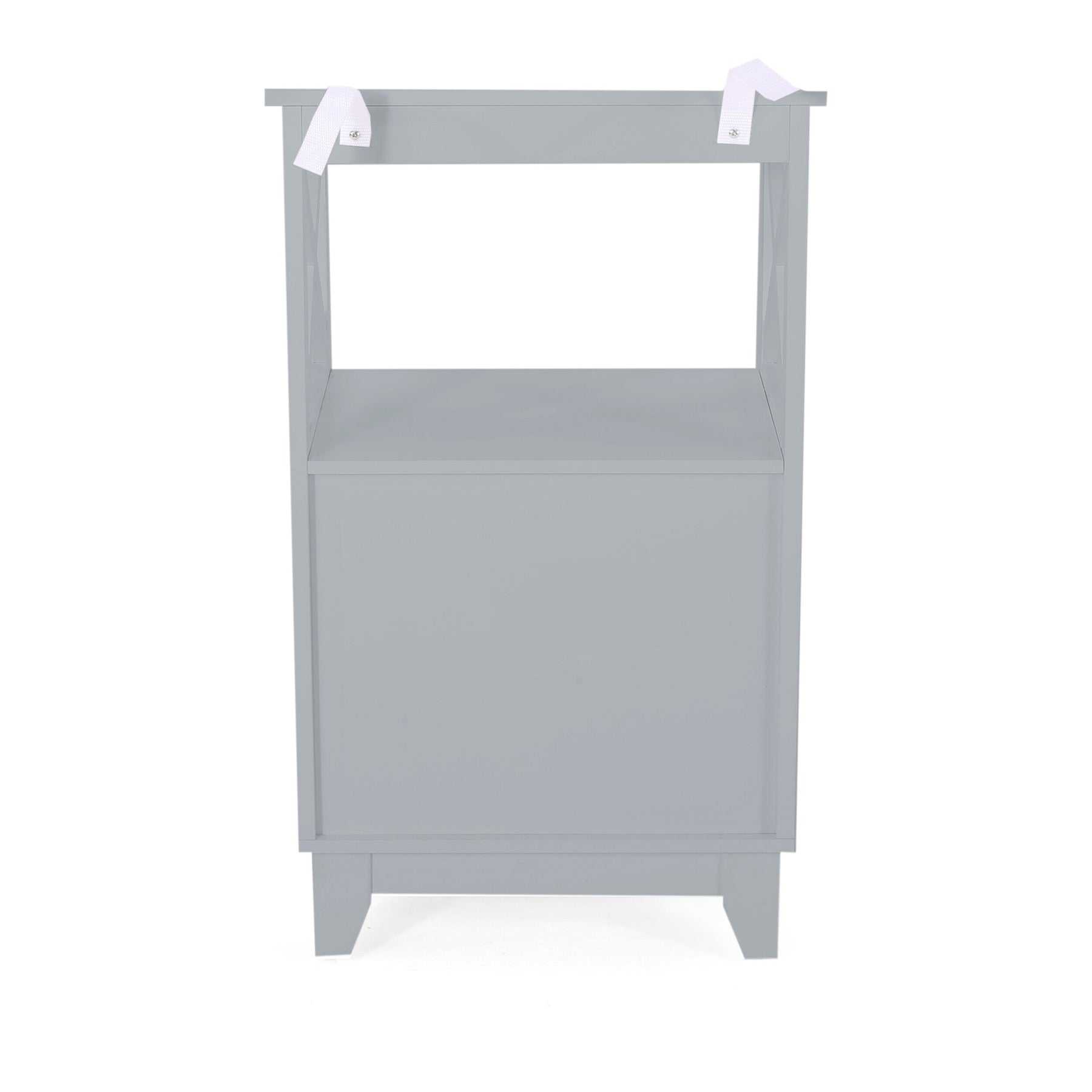 Q: Is the cabinet suitable for humid bathroom environments? A: Yes, the cabinet is made from faux wood, which is moisture-resistant and well-suited for bathroom use.