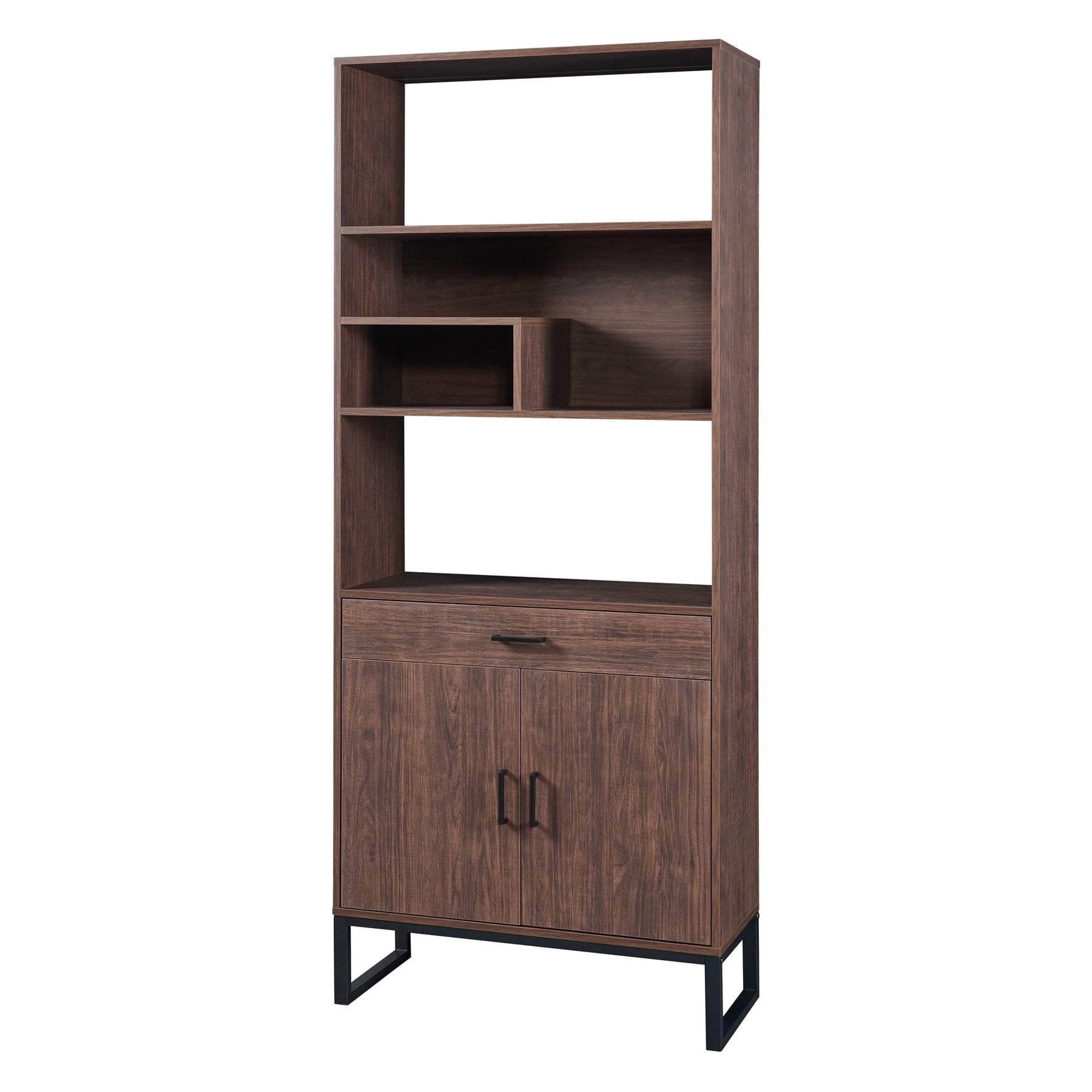 Enhance your office's elegance and efficiency with the Siavonce Walnut 5-Shelf Office Cabinet today!