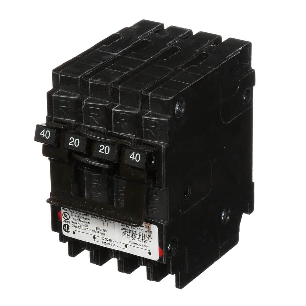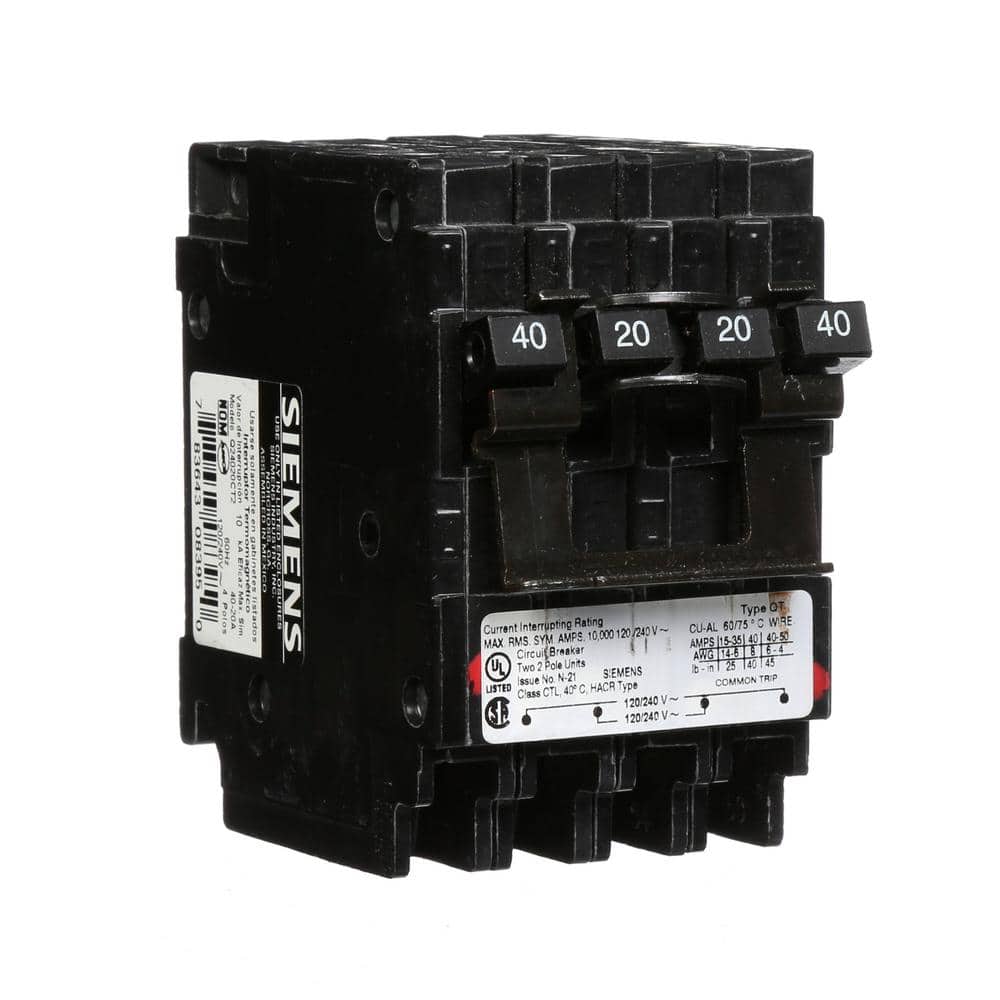 Siemens 20 Amp Double-Pole and 40 Amp Double-Pole Type QT Quad Circuit Breaker