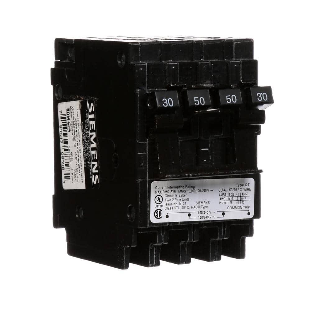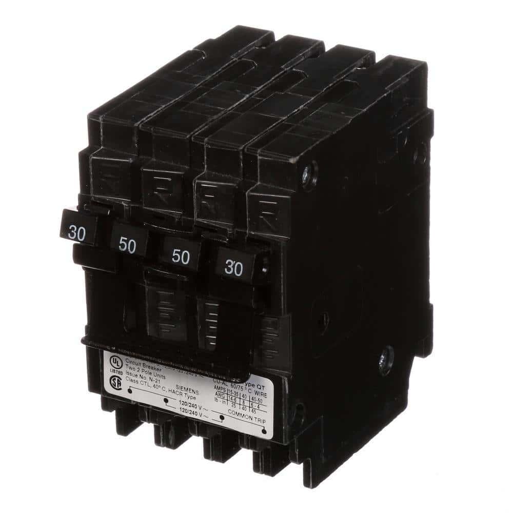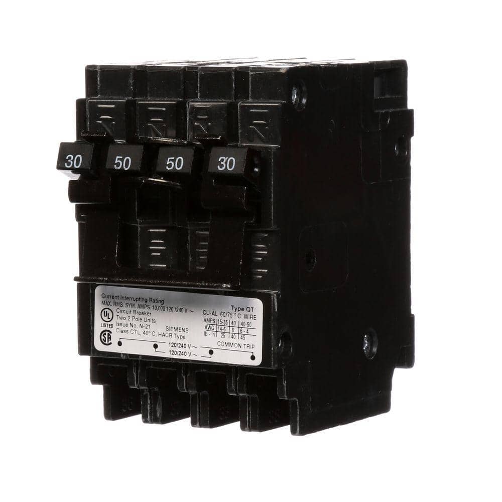 Siemens Quadplex One Outer 50 Amp Double-Pole and One Inner 30 Amp Double-Pole-Circuit Breaker