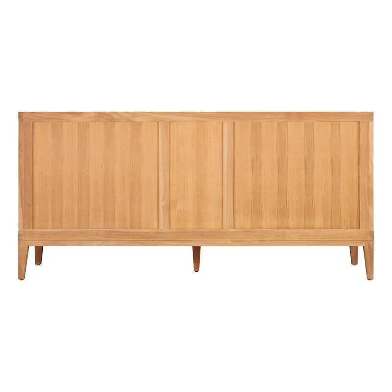 - Solid Teak Cabinet: Four doors, three soft-close drawers, and two shelves for organized storage