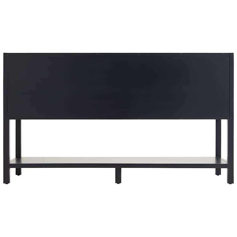 Robertson’s midnight navy finish and satin brass pulls create a striking, tailored silhouette that instantly elevates the bath. The open shelf grounds the piece with airy balance, while the refined drawer fronts add architectural detail. Style with pale stone tops and warm metallic fixtures to amplify the luxe contrast. It’s a modern essential that brings polished, livable sophistication to any space.
