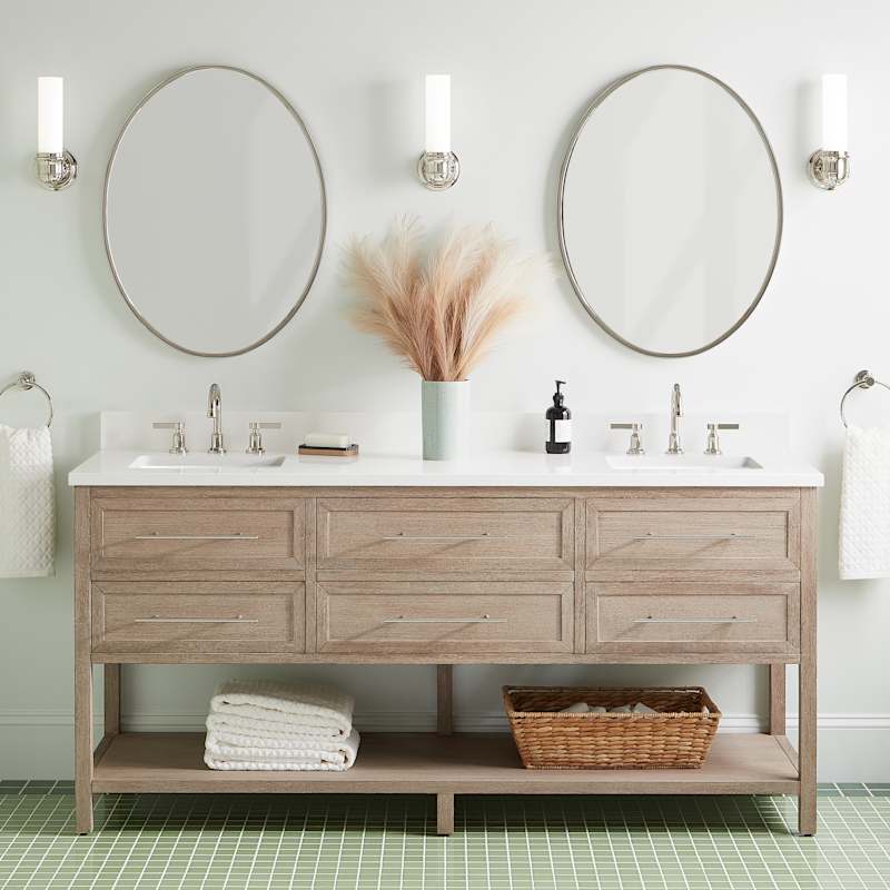 - Customization-Ready: Hardware pulls included; faucets and mirrors sold separately