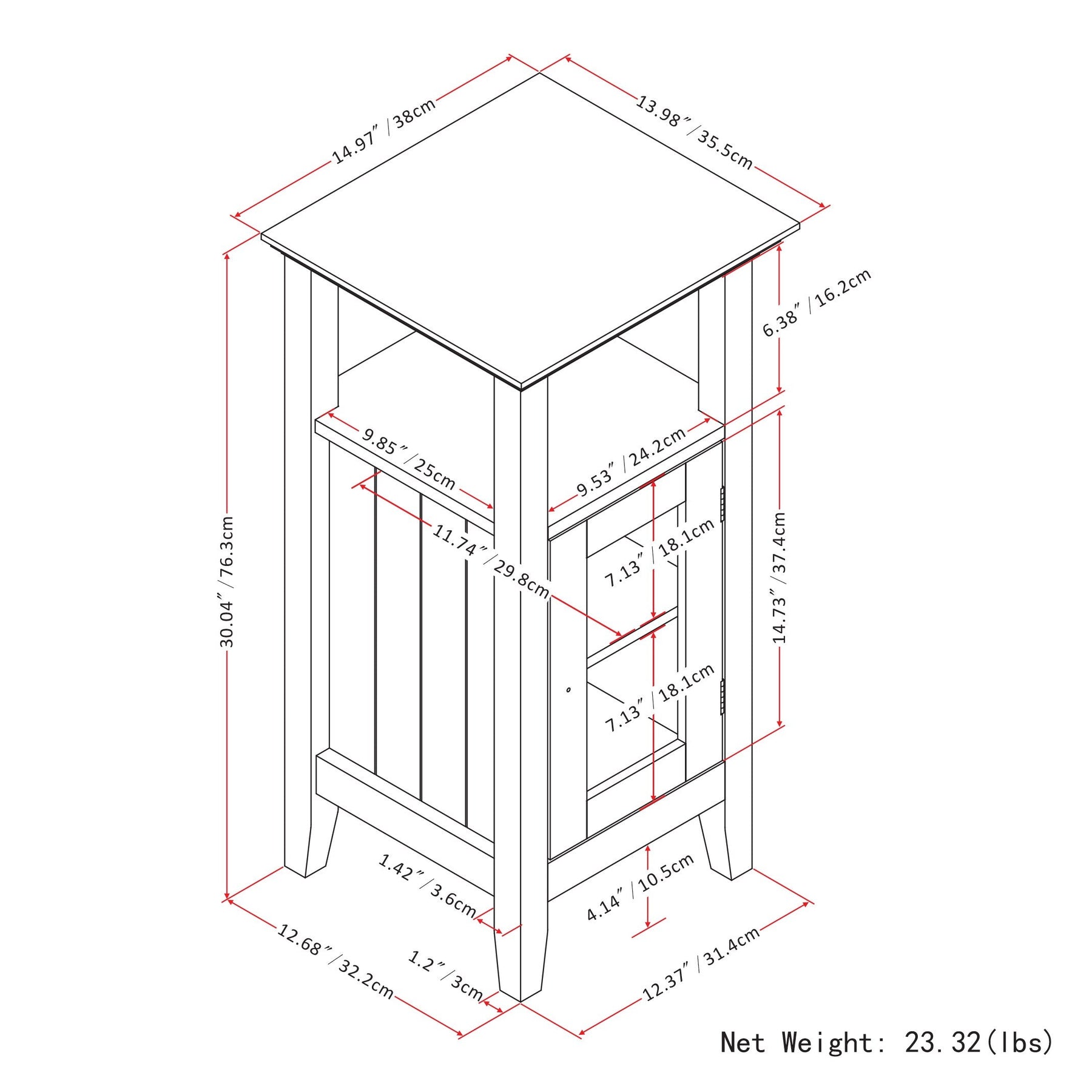 Q: Can the shelf inside the cabinet be adjusted? A: Yes, the interior shelf is adjustable, allowing you to customize the storage space to fit your needs.