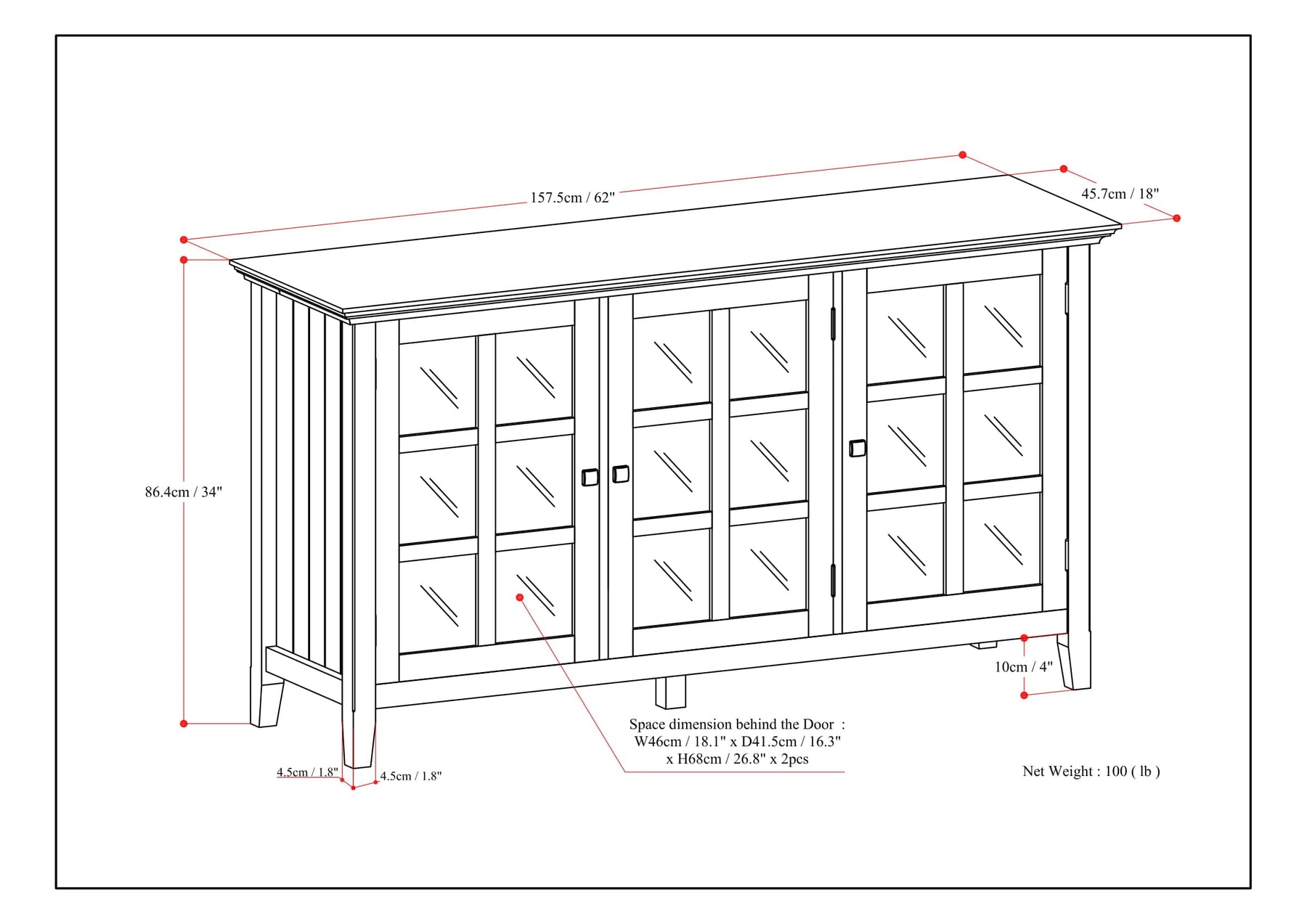 The Acadian Wood Media Cabinet by Simpli Home offers a sophisticated space solution with a transitional design and handcrafted solid wood construction. Featuring a warm Brunette Brown finish, this cabinet integrates durability with timeless style, perfect for any room needing elegant storage.