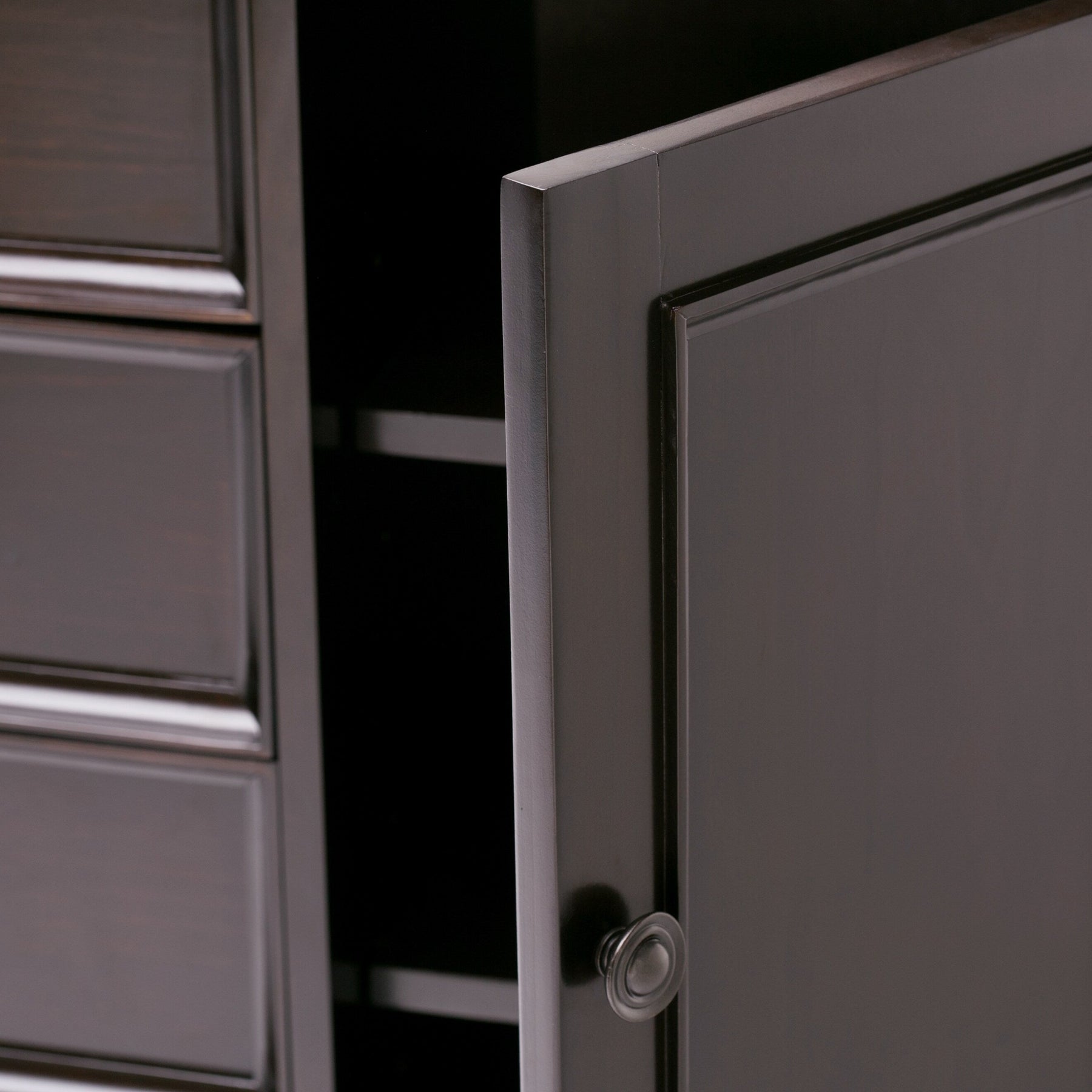 Q: Is the cabinet suitable for storing electronics or media equipment? A: Yes, the media cabinet is designed to safely store DVDs and other media accessories while contributing to a tidy, organized space.