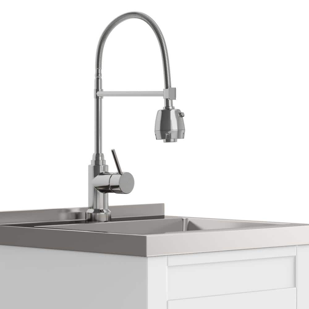 Deep Stainless Steel Sink: Features a 10-inch, 20-gauge sink with a protective backsplash.