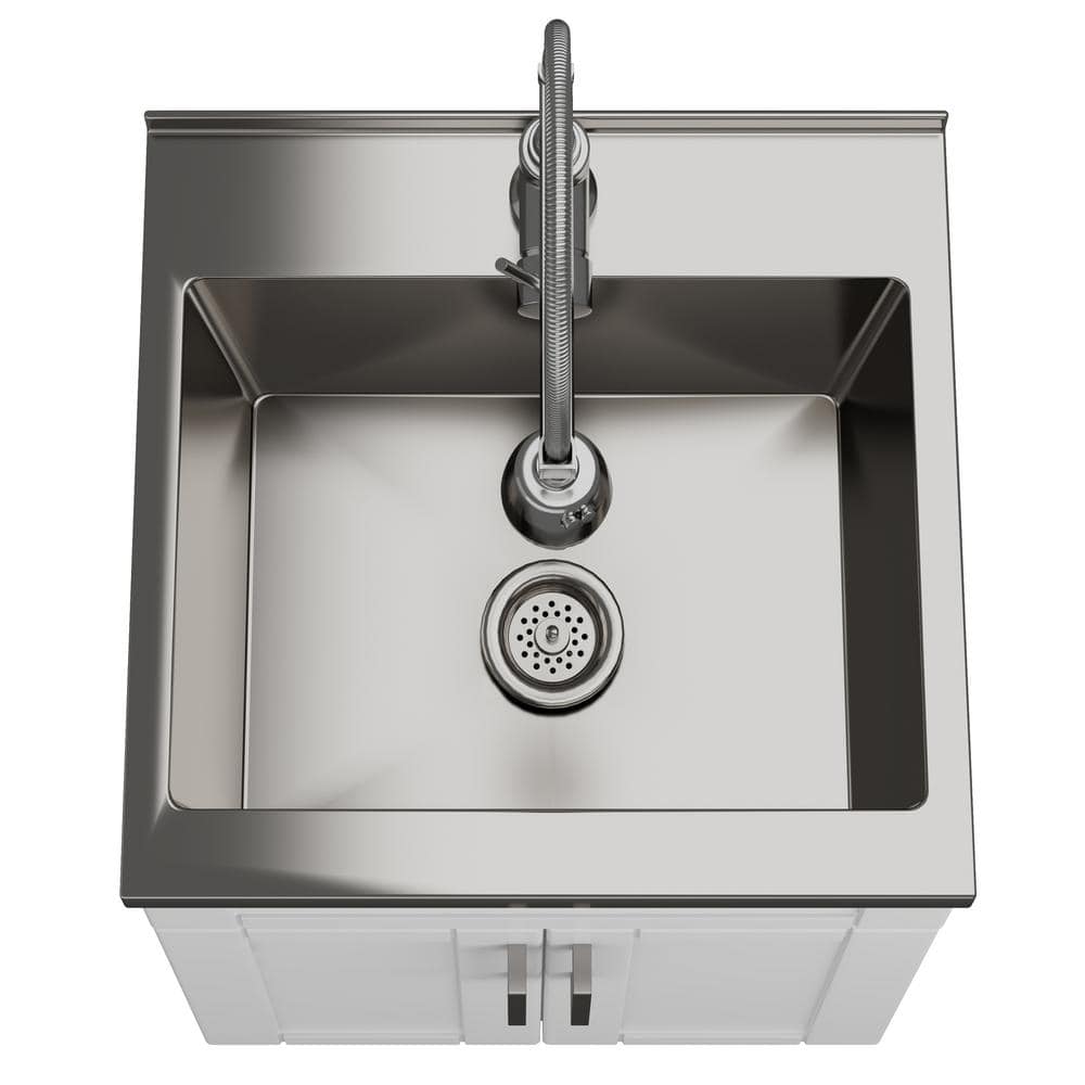 Space-Saving Design: 20" cabinet with an integrated stainless steel sink fits compact areas.