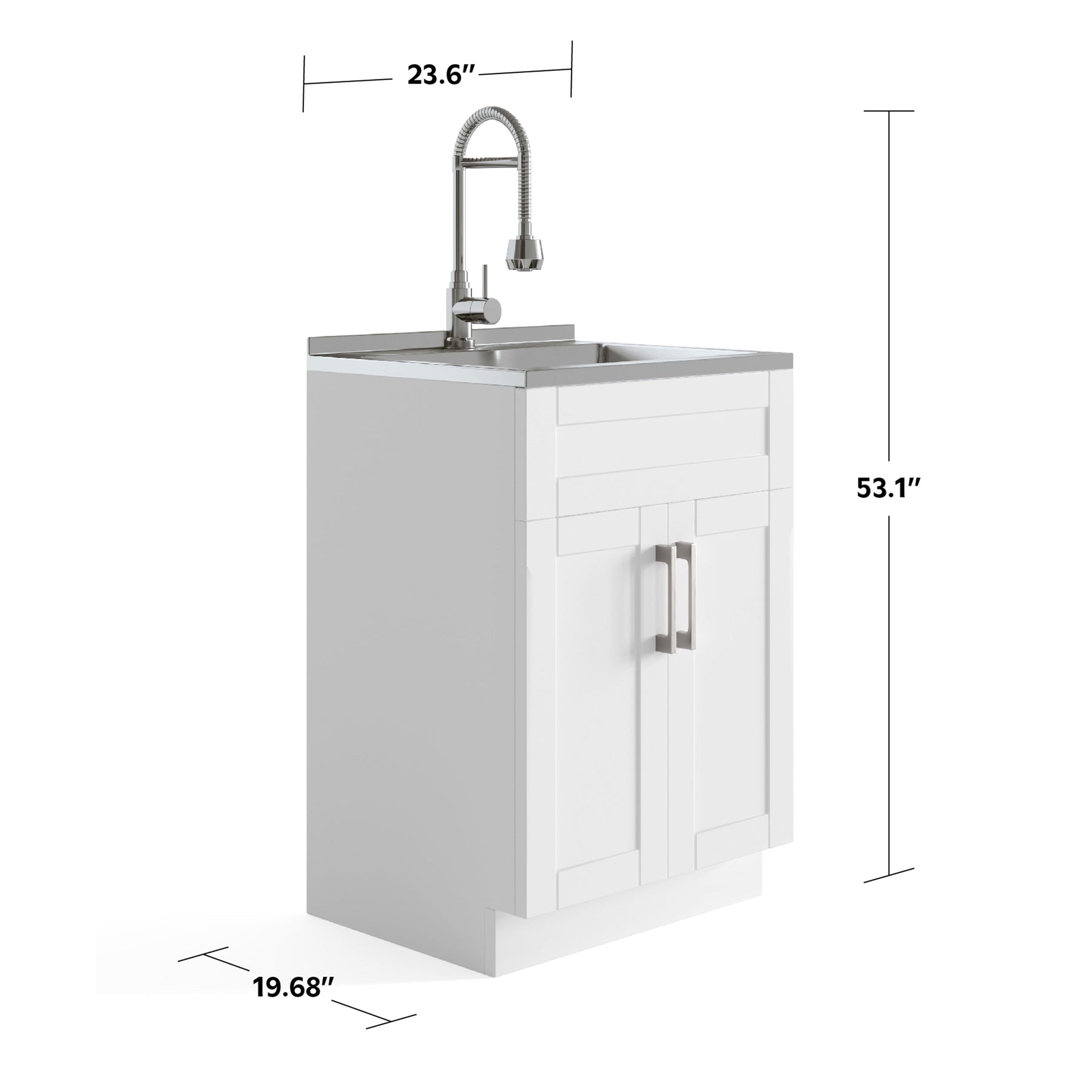 The Simpli Home Hennessy Freestanding Laundry Sink beautifully combines style and functionality, transforming your laundry room into a modern sanctuary. Featuring a deep stainless steel basin with a contemporary high-arch faucet, complemented by a sleek, durable PVC-framed cabinet with shaker-style doors, it brings efficiency and elegance to your cleaning tasks. Designed with high-quality materials to ensure long-lasting use, it offers ample storage and effortless organization.