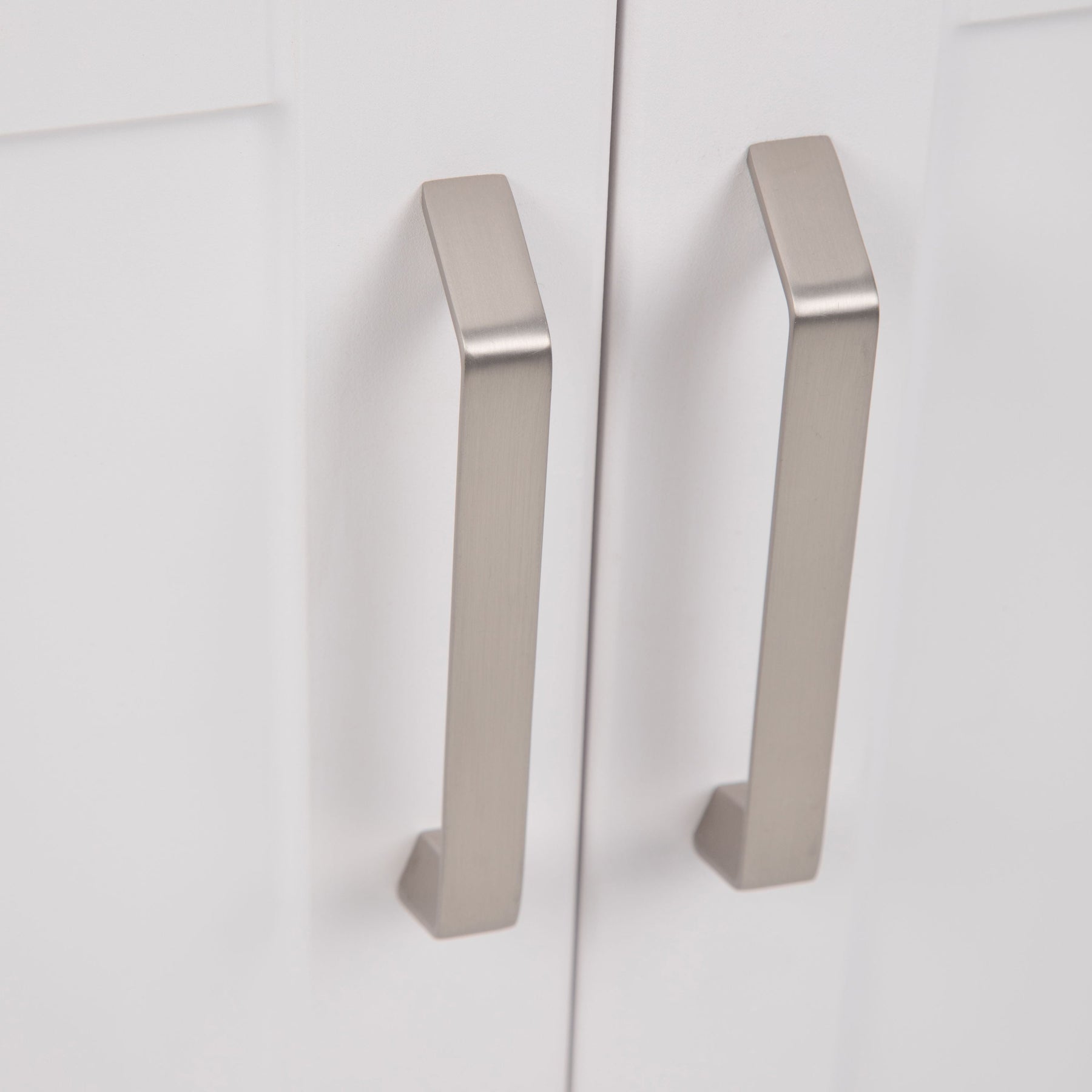 Spacious Storage: Features two doors with brushed nickel hardware providing ample space.
