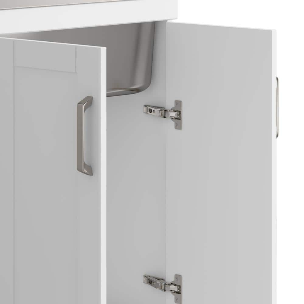 The Kyle Wall Mount Laundry Sink by Simpli Home elevates any utility area with its crisp design and functional prowess. The deep stainless steel sink paired with the chic, pure white cabinet redefines what it means to be practical. Imagine this sophisticated unit gracing your workshop or laundry room, adding a stylish yet utilitarian touch to your everyday tasks. With its seamless integration of aesthetics and utility, this laundry sink stands as a hallmark of modern, luxurious living.