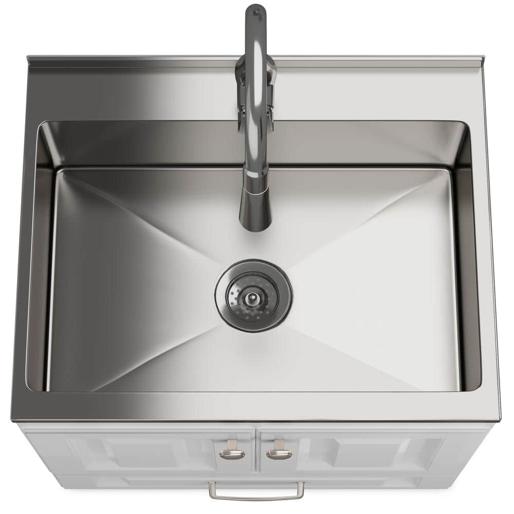 Q: Can this utility sink handle heavy-duty tasks? A: Yes, the 20-gauge stainless steel sink is designed for durability and can handle heavy-duty laundering tasks.
