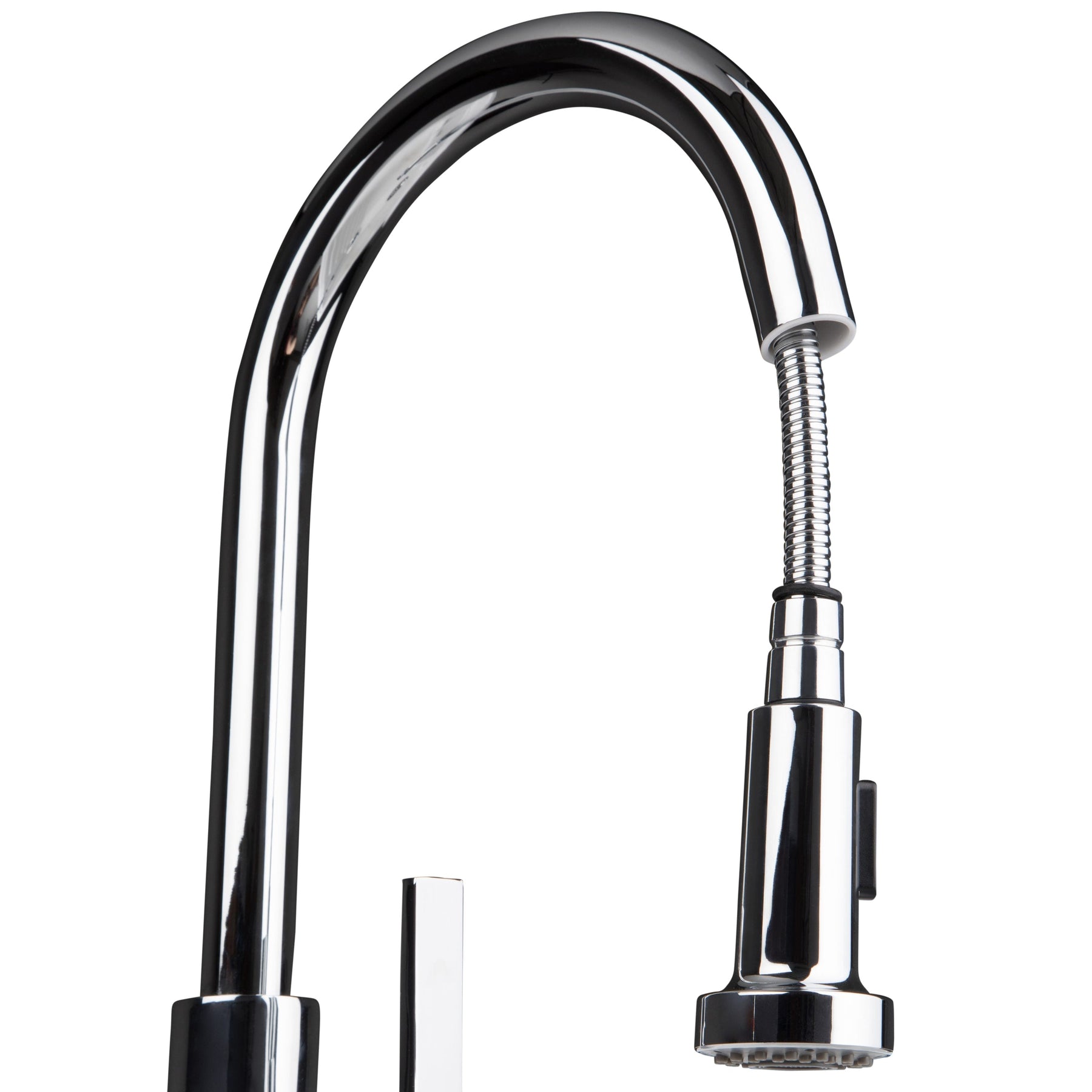 High-Arc Faucet: Comes with a single lever faucet with on and off spray for convenience.