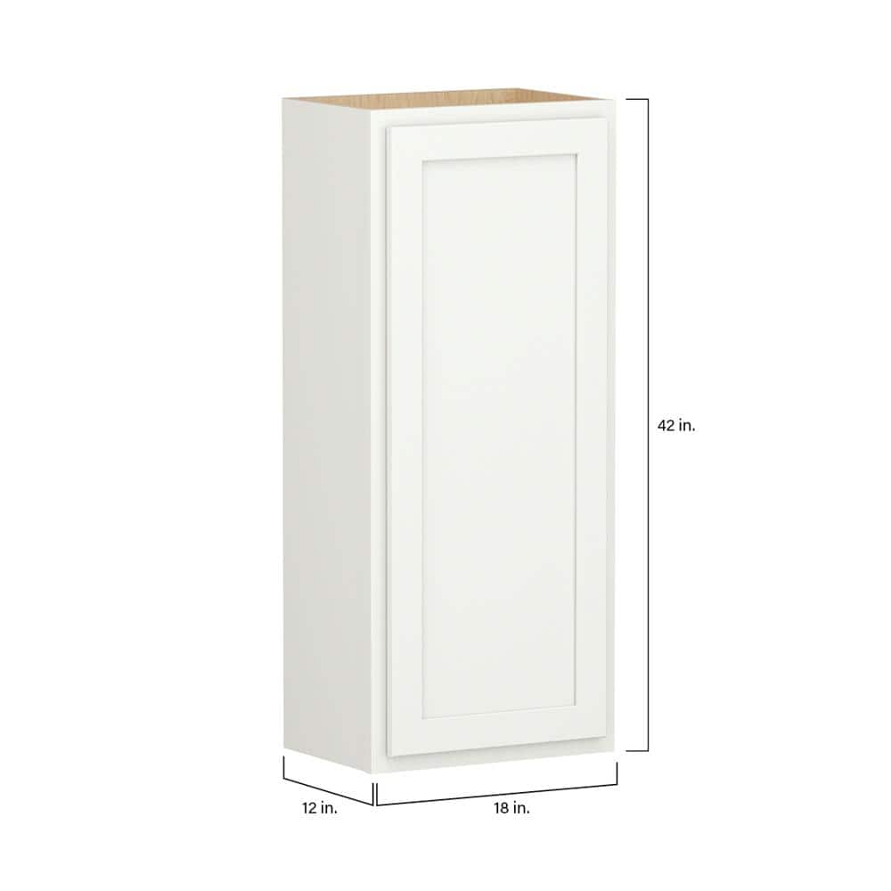 SIMPLY WOODMARK PRO Shaker Partial Overlay 18 in. W x 12 in. D x 42 in. H Plywood Assembled Wall Kitchen Cabinet in Linen White