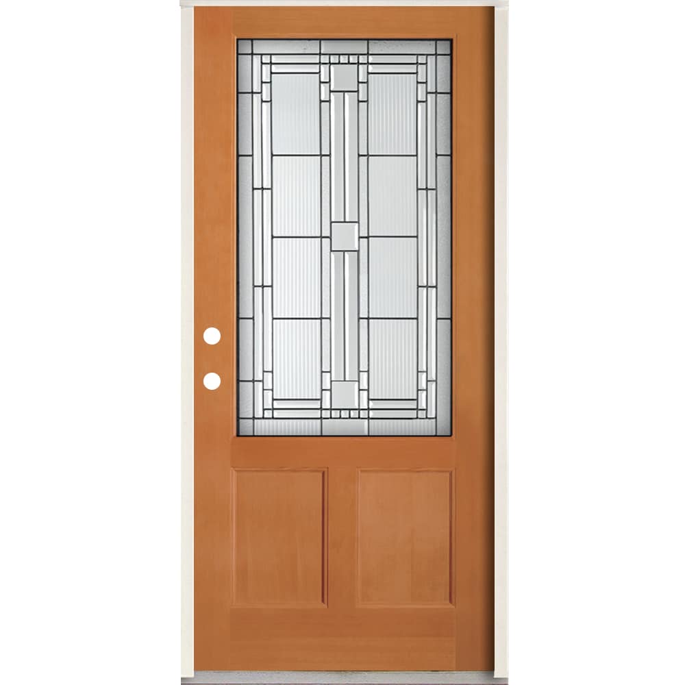 Transform your home's entrance with the Simpson 36" x 80" Wood Prehung Front Door. This door features premium Douglas fir wood construction with an exquisite 3/4 lite decorative glass, offering both timeless beauty and lasting durability. Engineered for versatility, it's ready for your custom paint or stain finish.