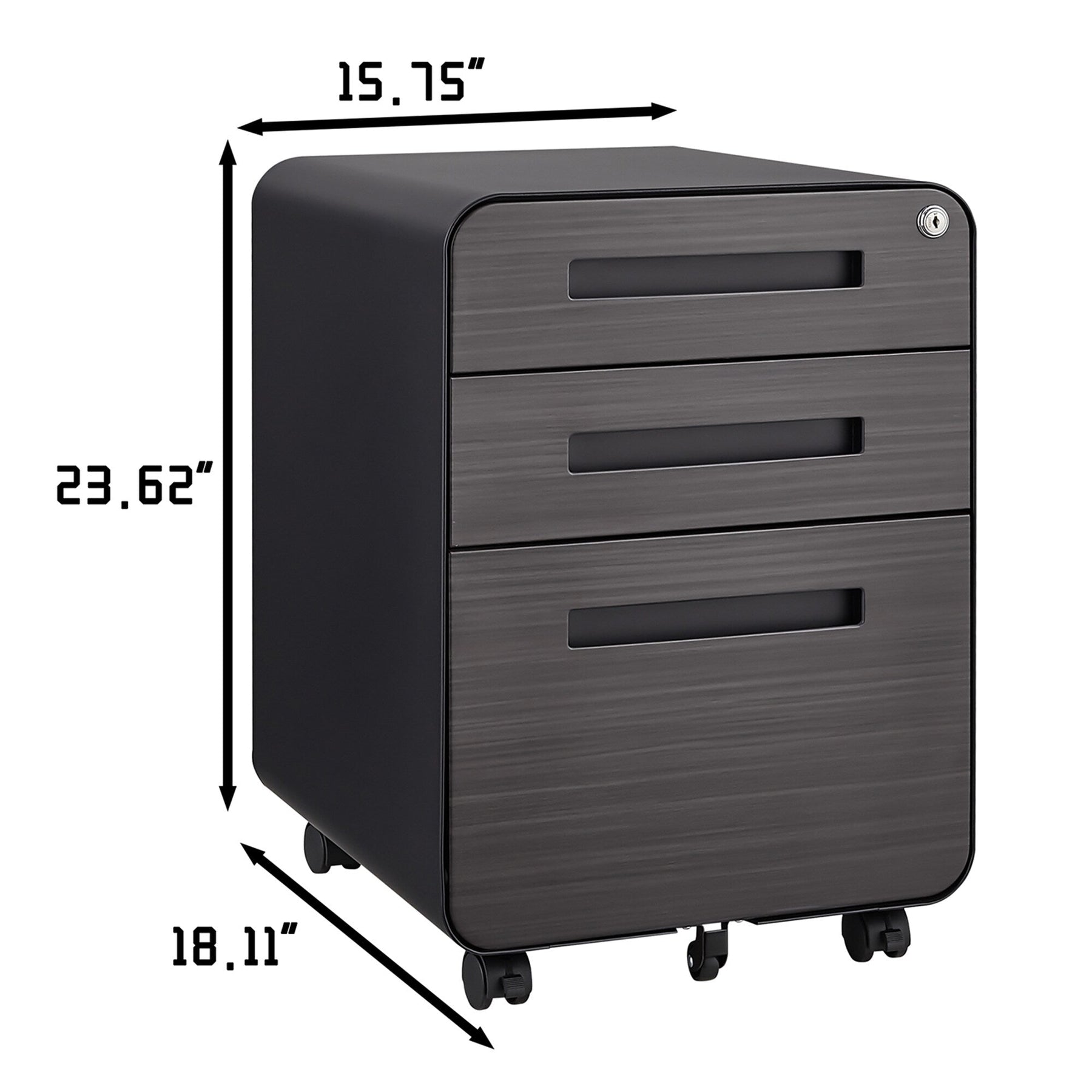 Q: Will this file cabinet fit under my desk? A: The cabinet is 15.8 inches wide and 23.6 inches tall, designed to fit under most desks for convenient access.