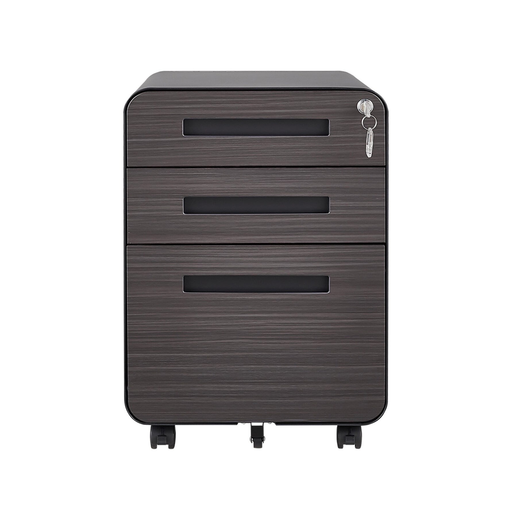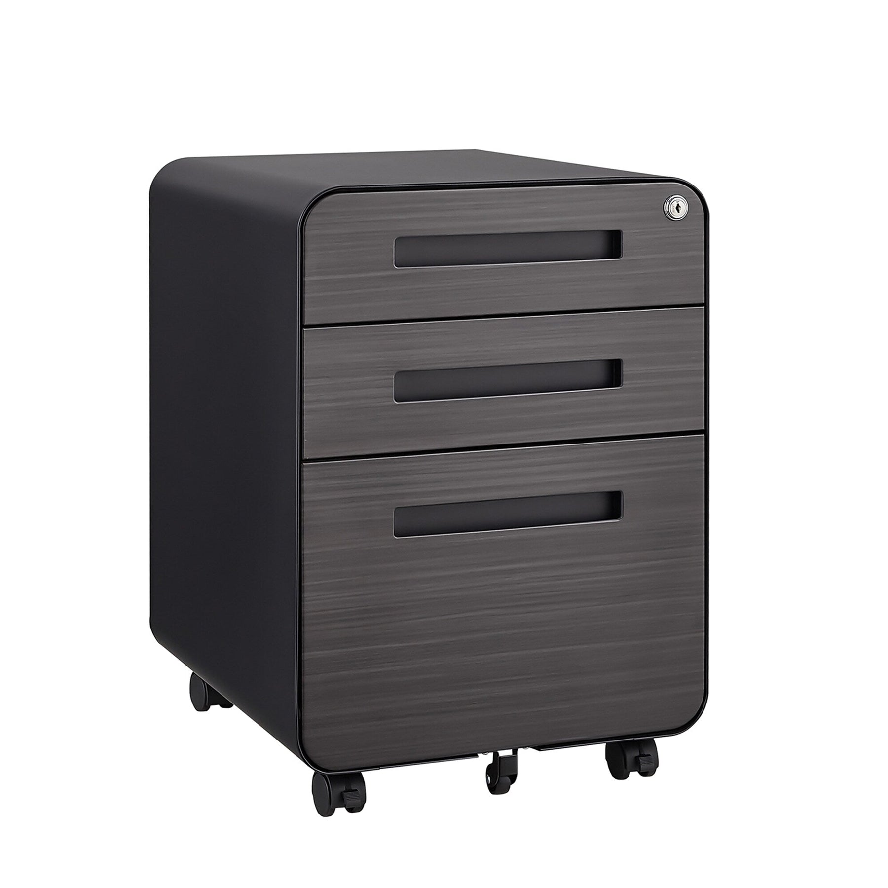 Organize your files in style and add a touch of elegance to your workspace with the SINOFURN Black 3-Drawer File Cabinet.