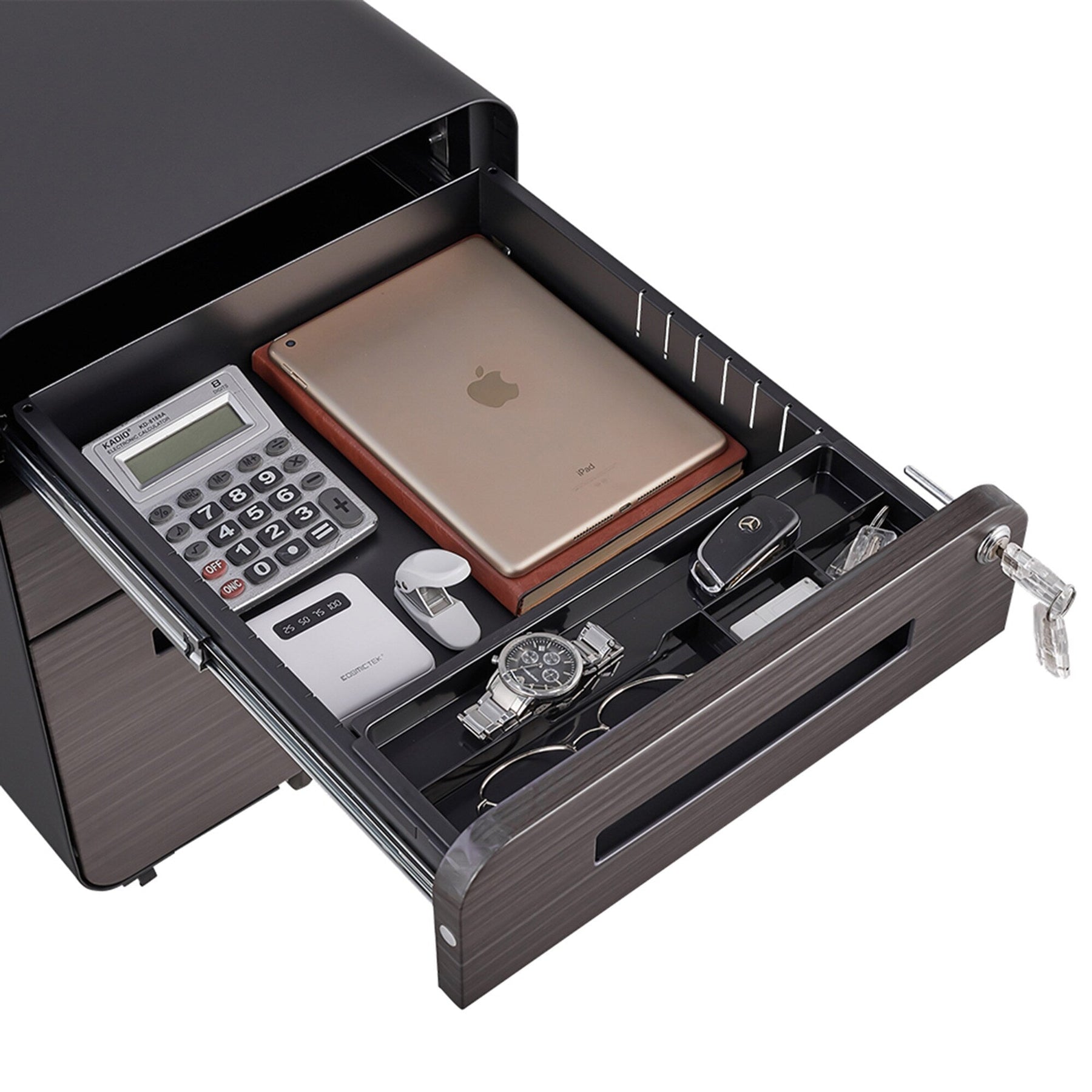 Secure Lock System: One lock secures all three drawers with two keys included for safety.