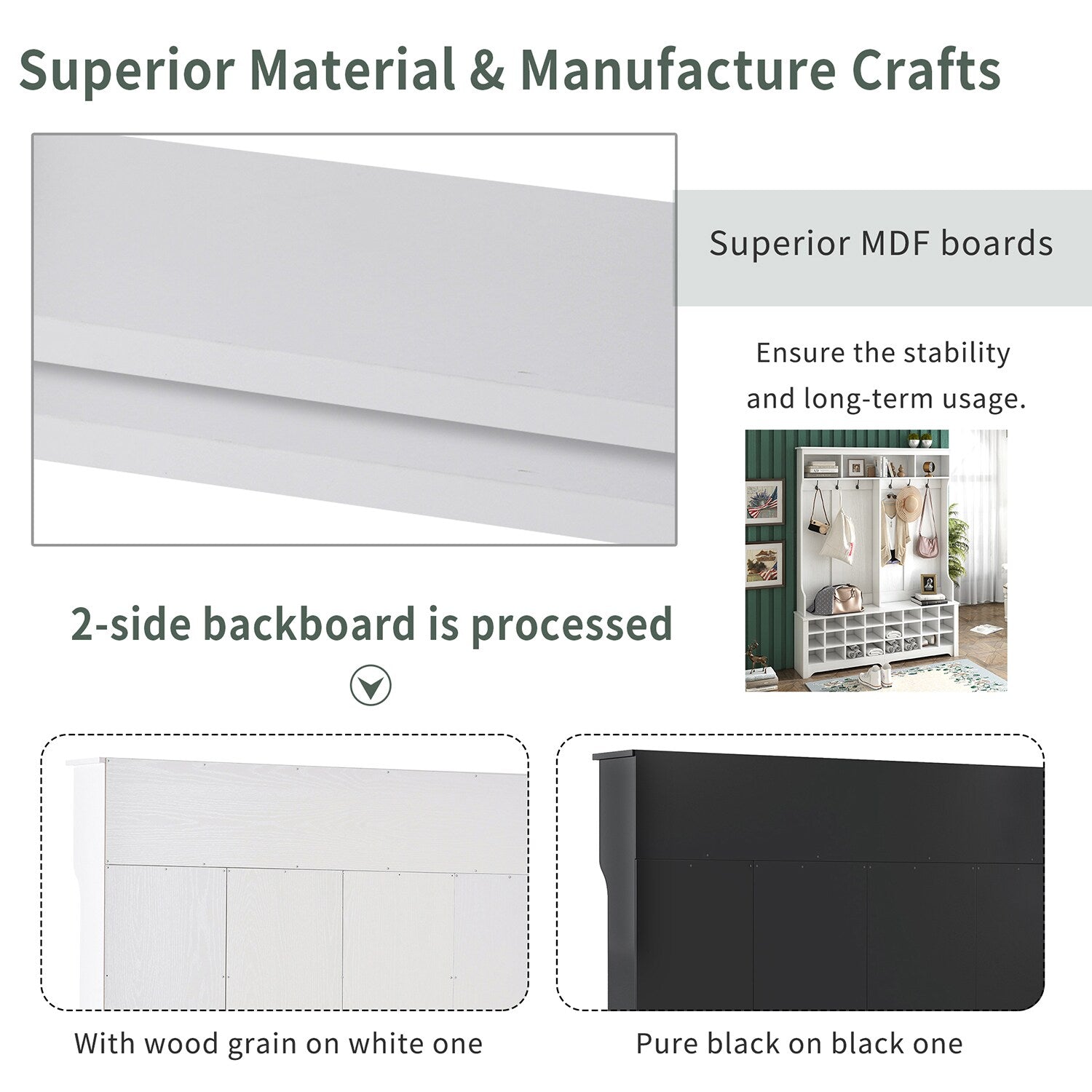Q: What materials are used in the construction of this hall tree? A: The SINOFURN hall tree is constructed using superior MDF and particle boards.