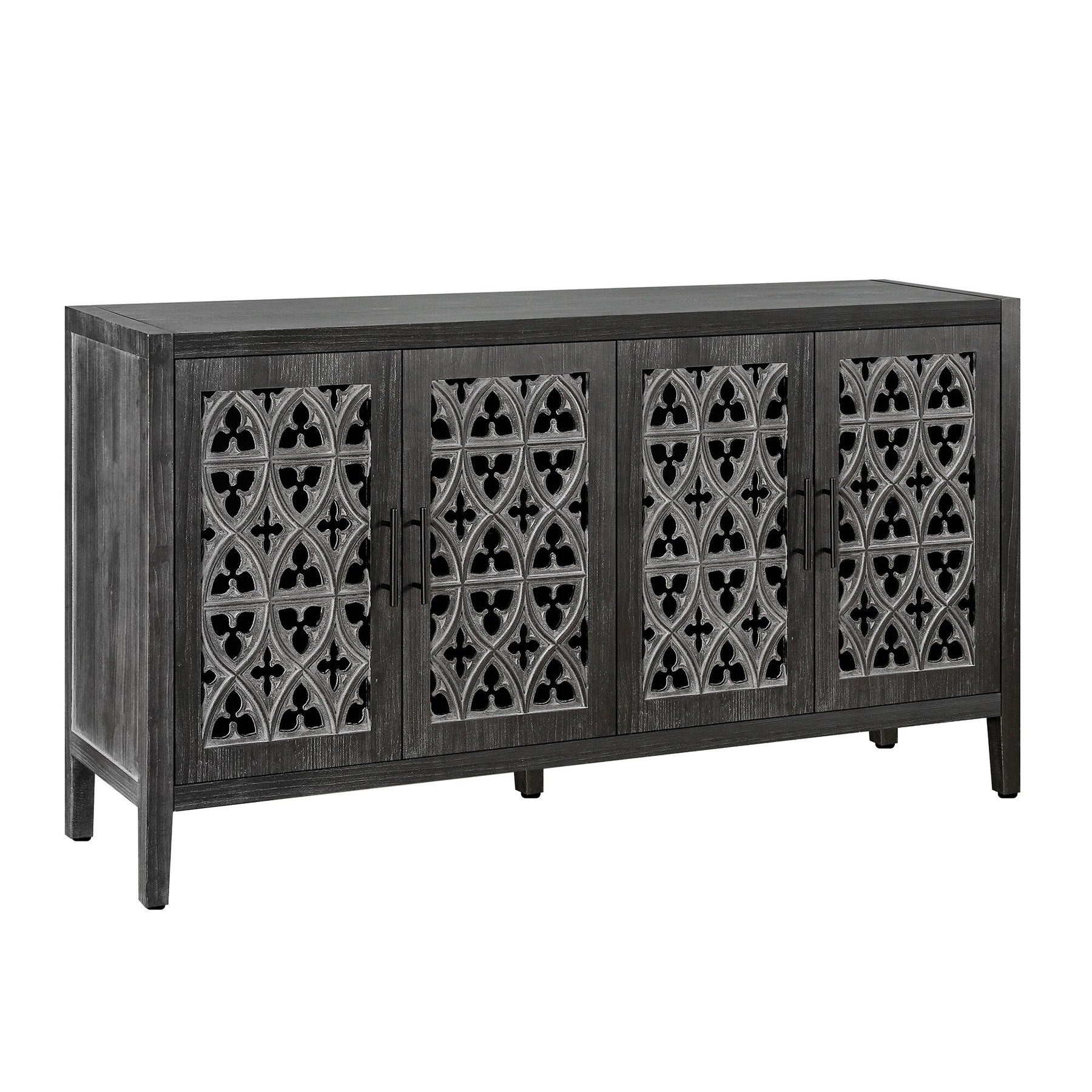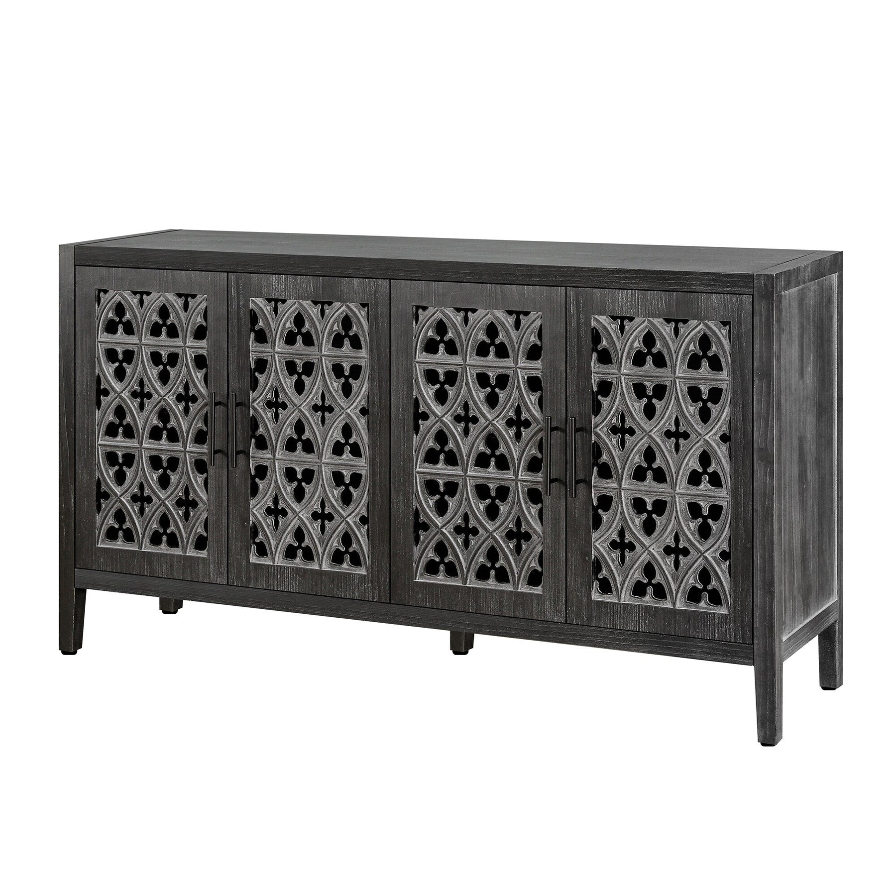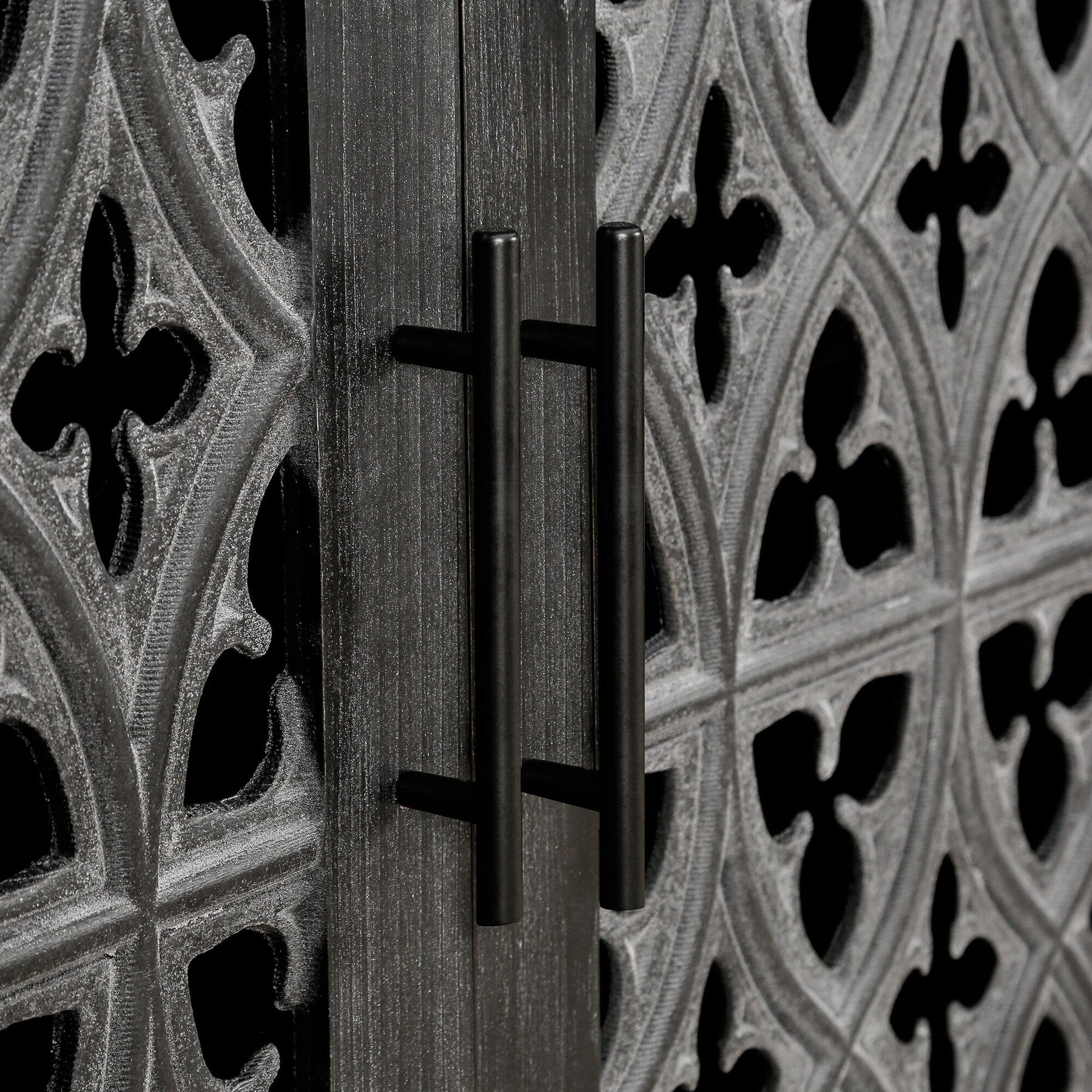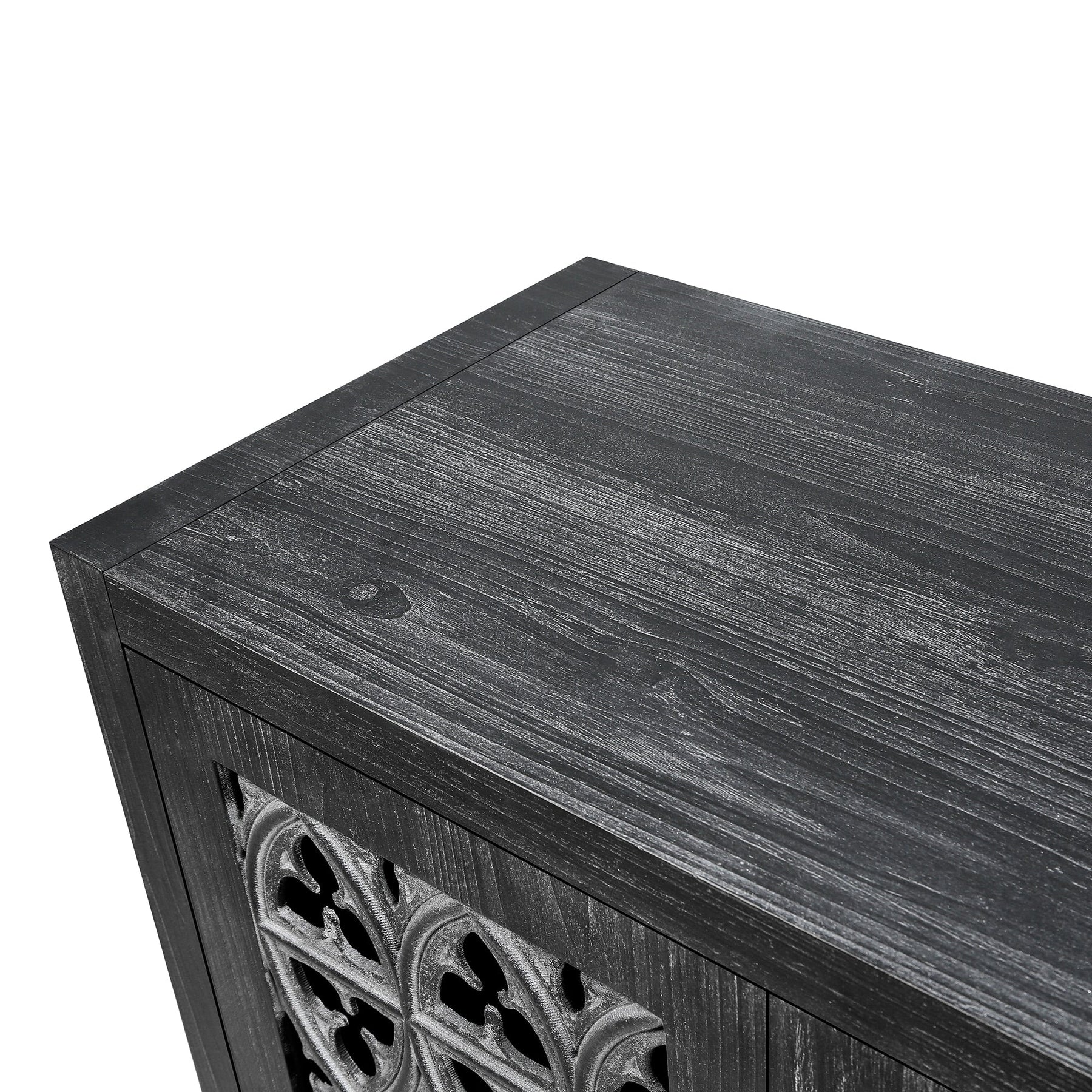 Transform your living room with the SINOFURN Traditional Black TV Cabinet, where classic design meets modern functionality. The enchanting hollowed-out doors with floral patterns introduce an airy elegance, making it a stylish focal point in any space. Pair it with lush velvet drapes and metallic accents to create a truly opulent setting. This cabinet not only secures your entertainment essentials but also elevates your home's ambience, encapsulating luxurious living with ease.