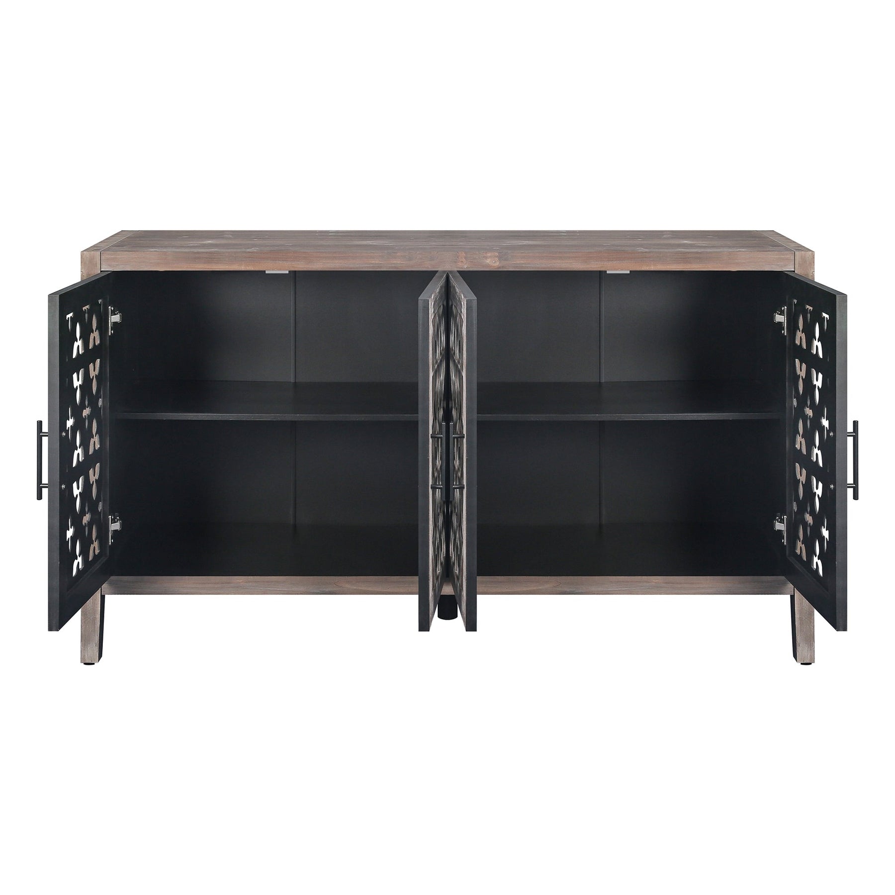 Q: Can the shelves be adjusted to different heights? A: Yes, the center panel features adjustable shelves, allowing for three different height configurations to suit your needs.