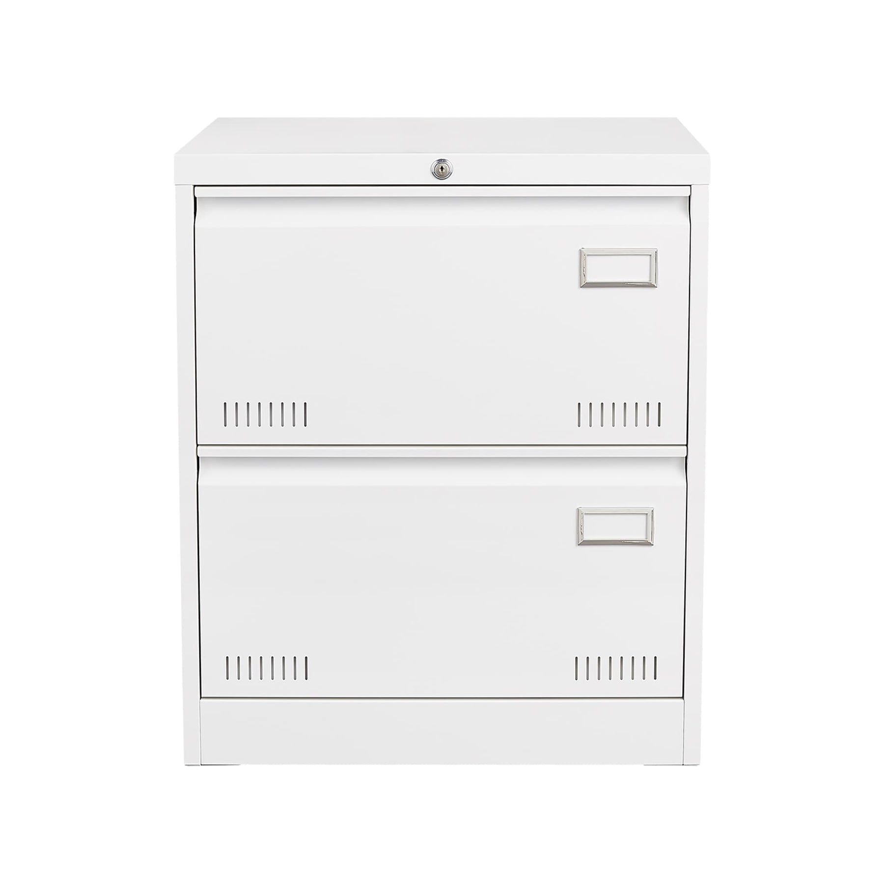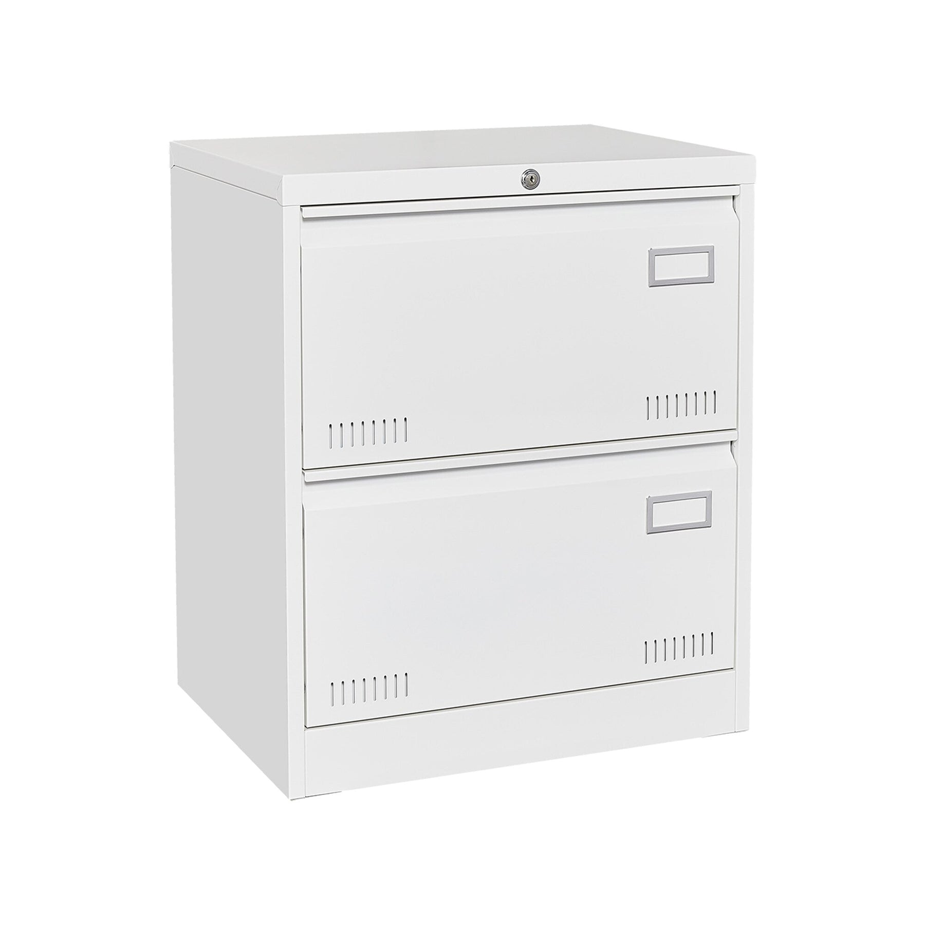 Maximize your office space with the SINOFURN White 2-Drawer File Cabinet. This sleek, contemporary cabinet offers widened drawers to efficiently store and manage large volumes of files, keeping your workspace organized and professional. Made from durable metal with a finished white surface, it ensures both style and security with lockable drawers.