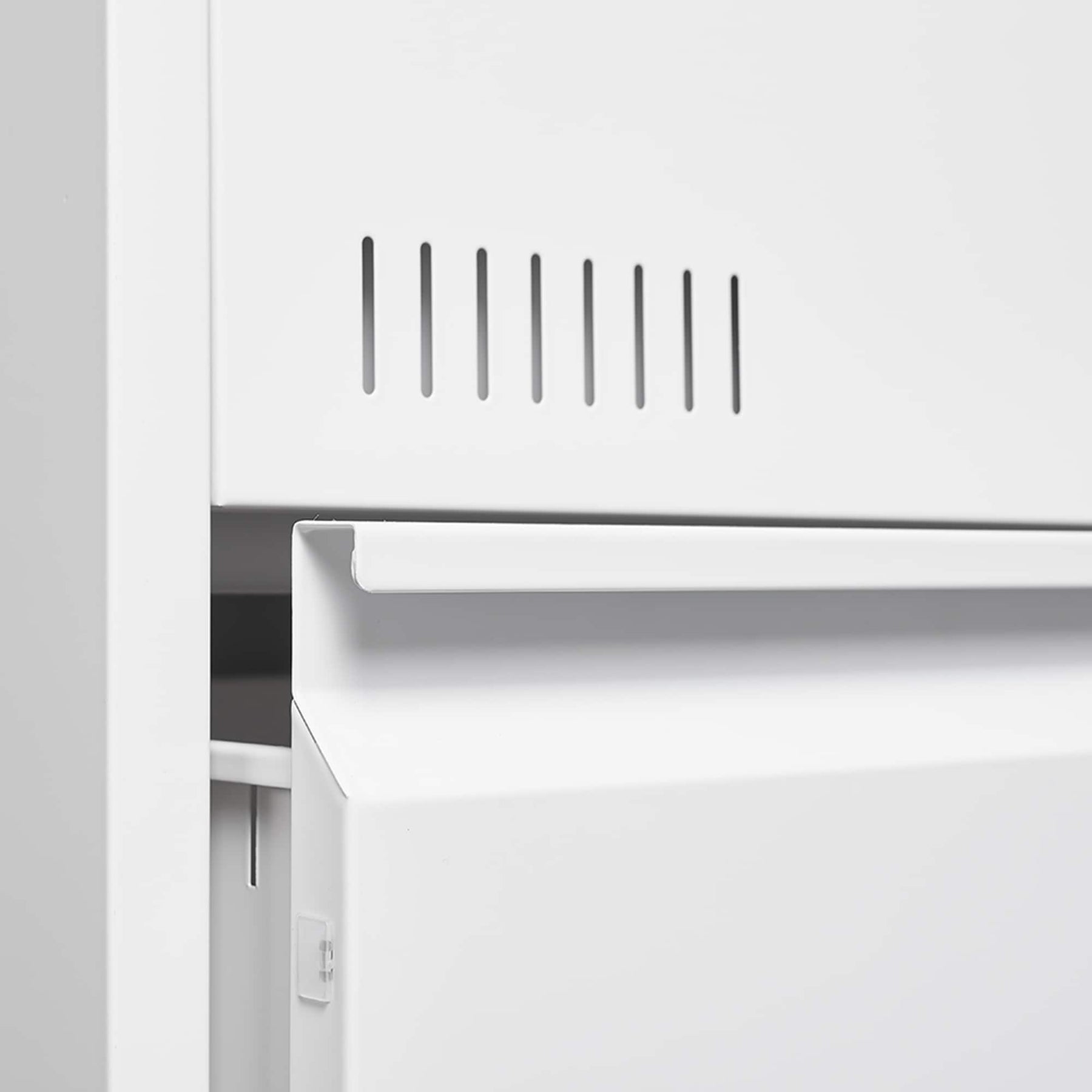 Modern Style: Contemporary white finish enhances any workspace with sleek, modern appeal.