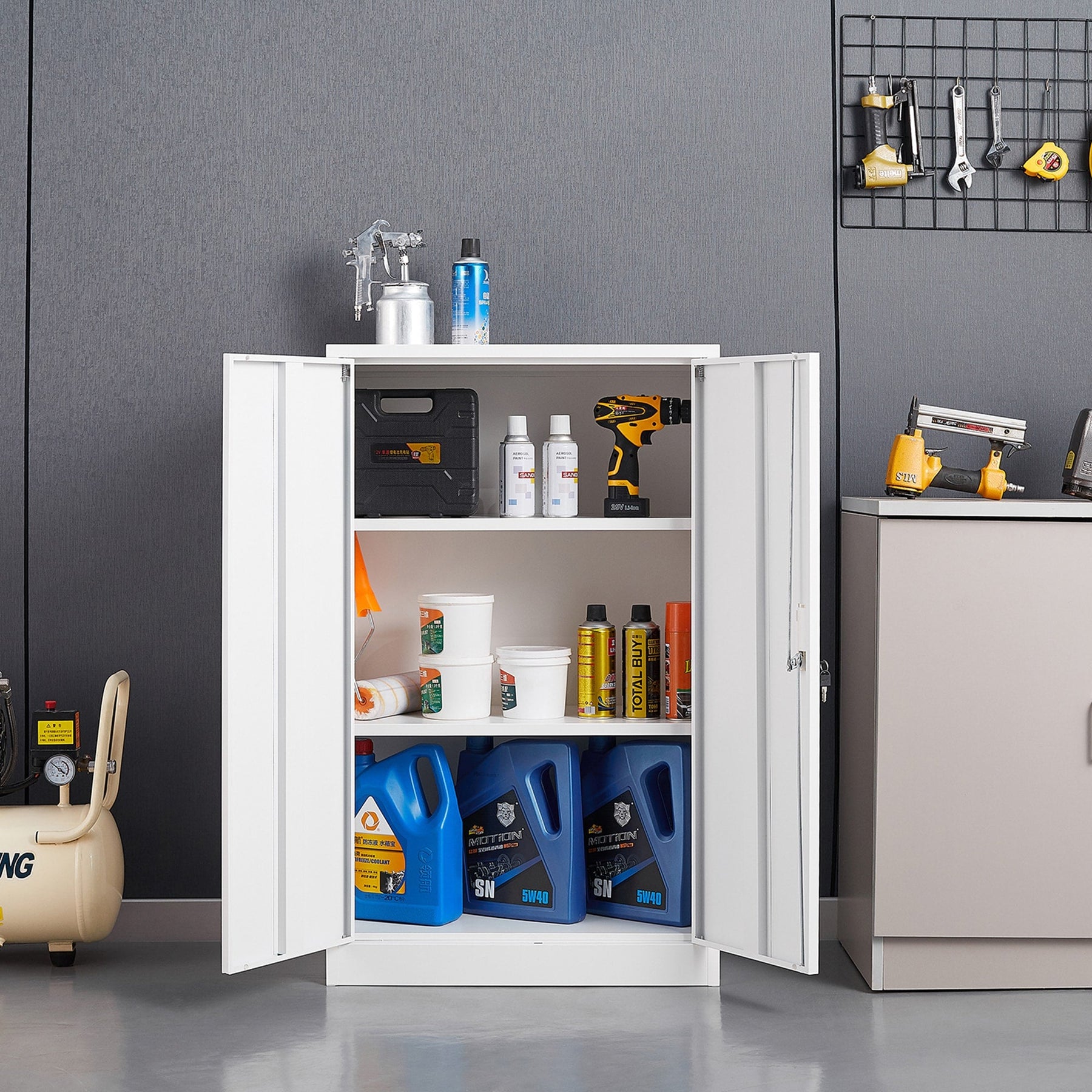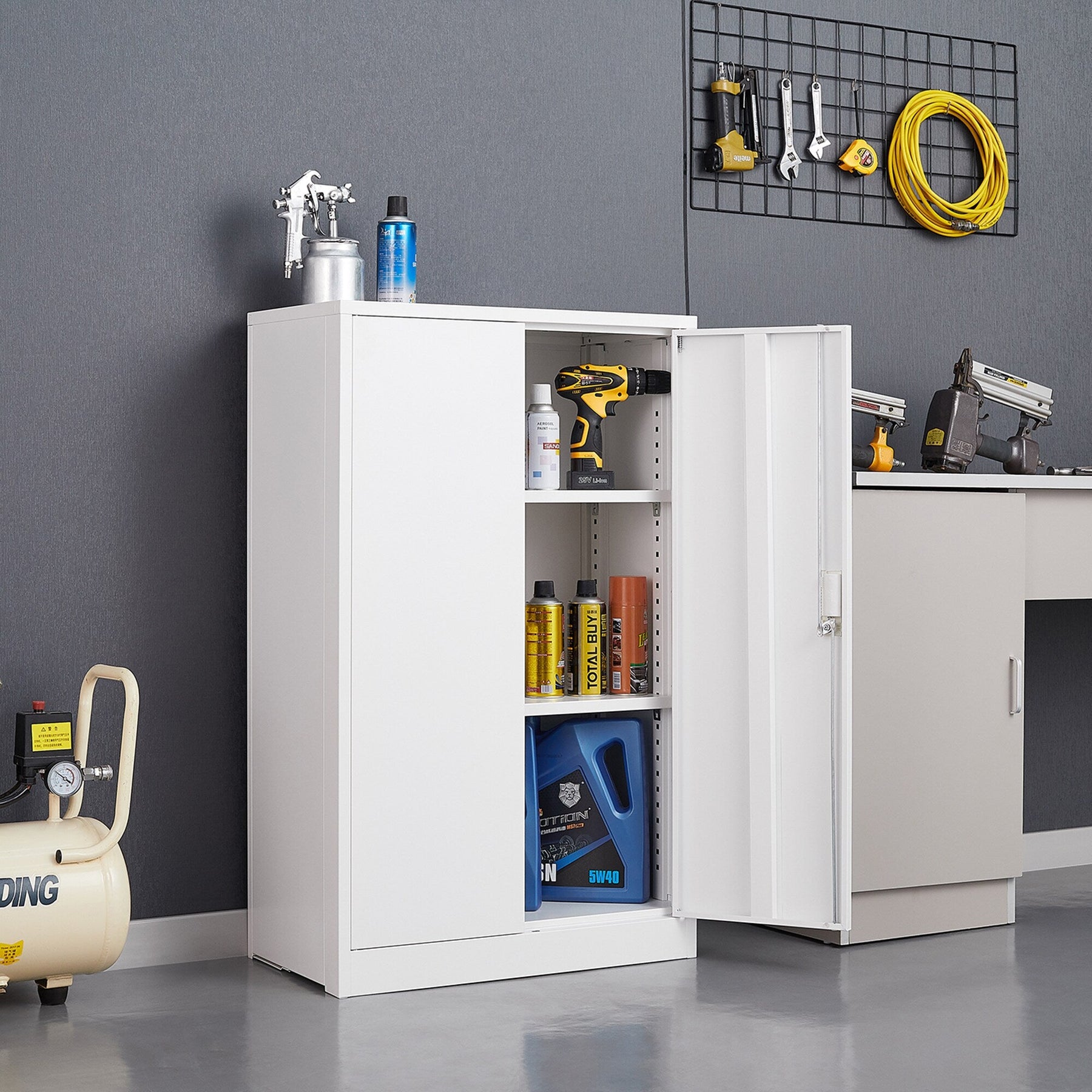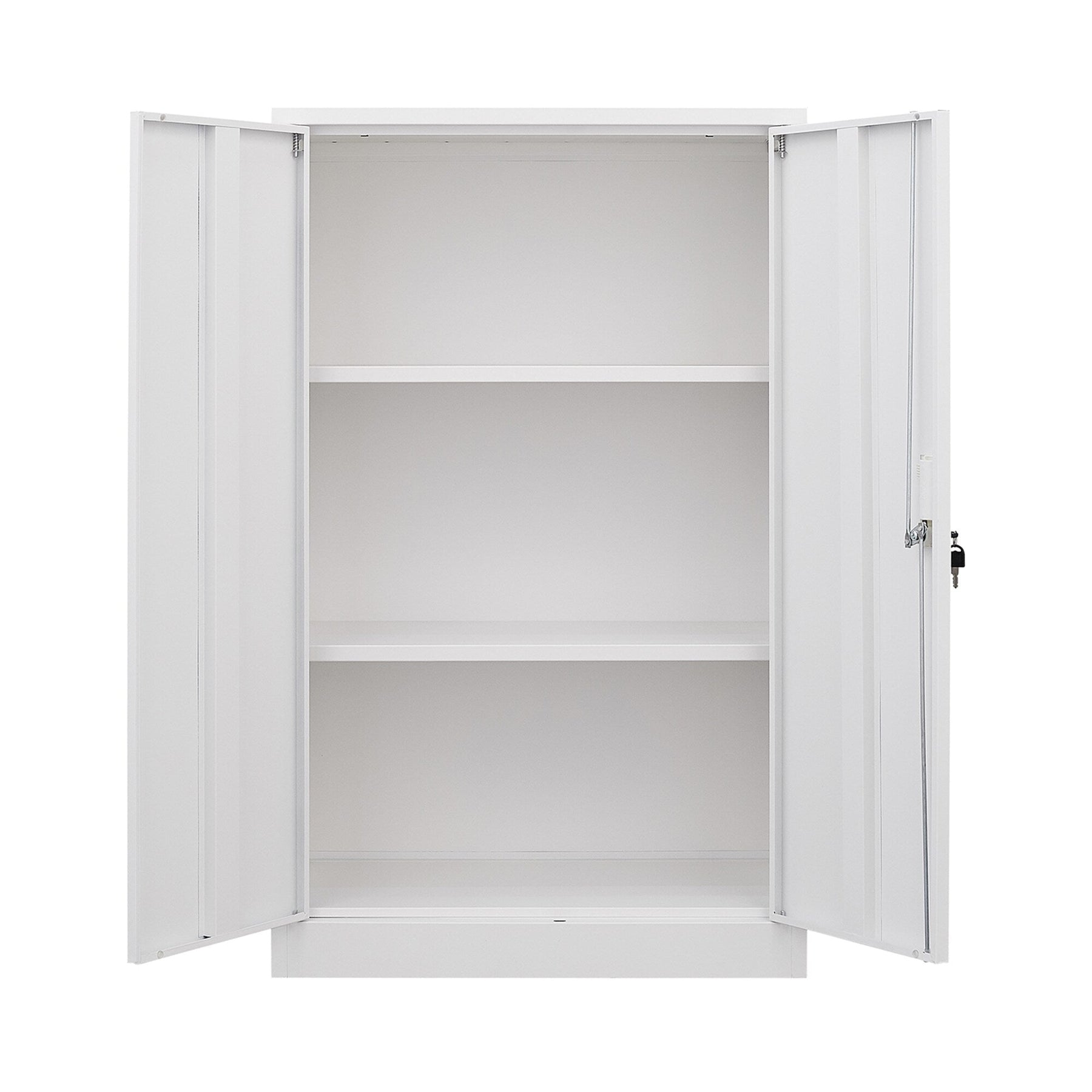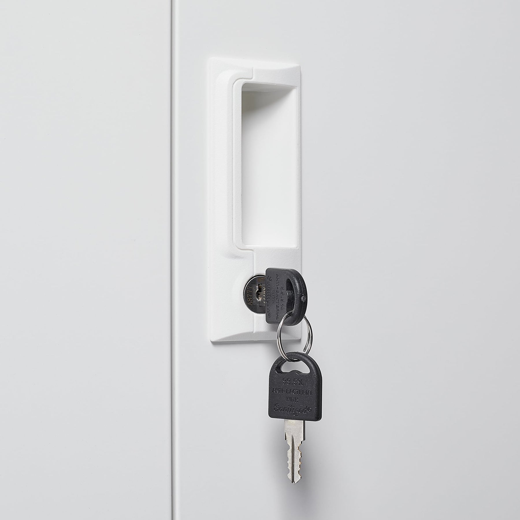 Q: How secure is the cabinet? A: The cabinet is equipped with handle locks for high security, ensuring your items are safe and well-protected.