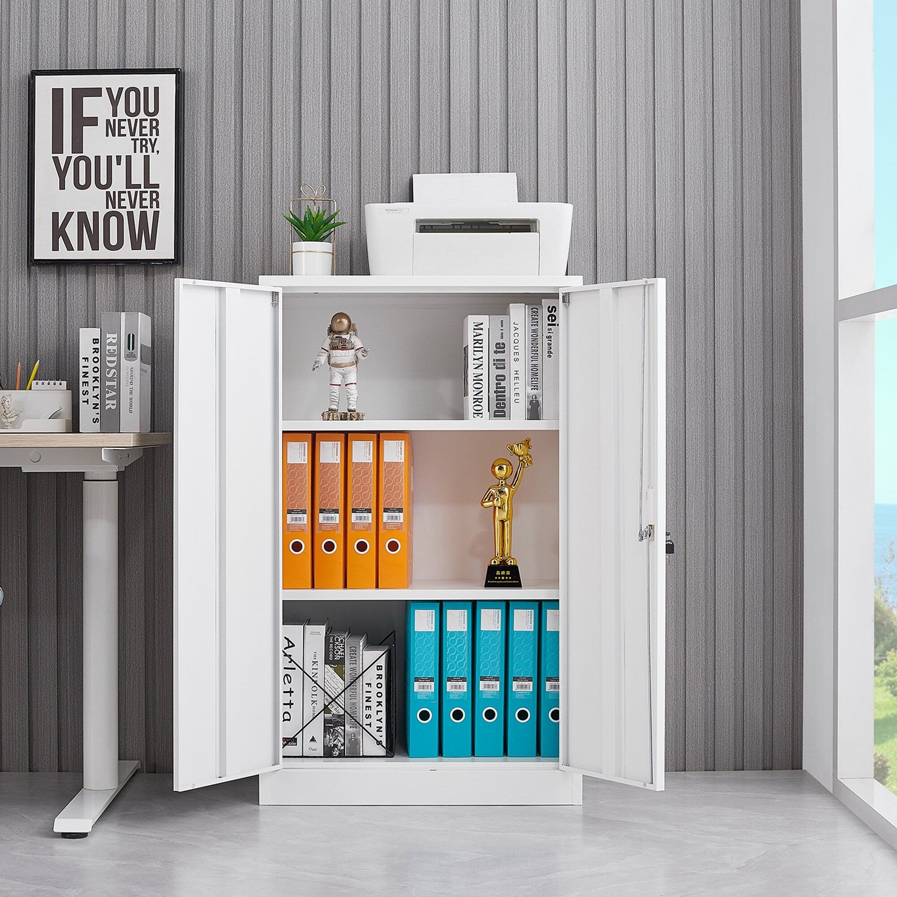 Experience the perfect blend of style and functionality with the SINOFURN White Folding File Cabinet and streamline your workspace today.