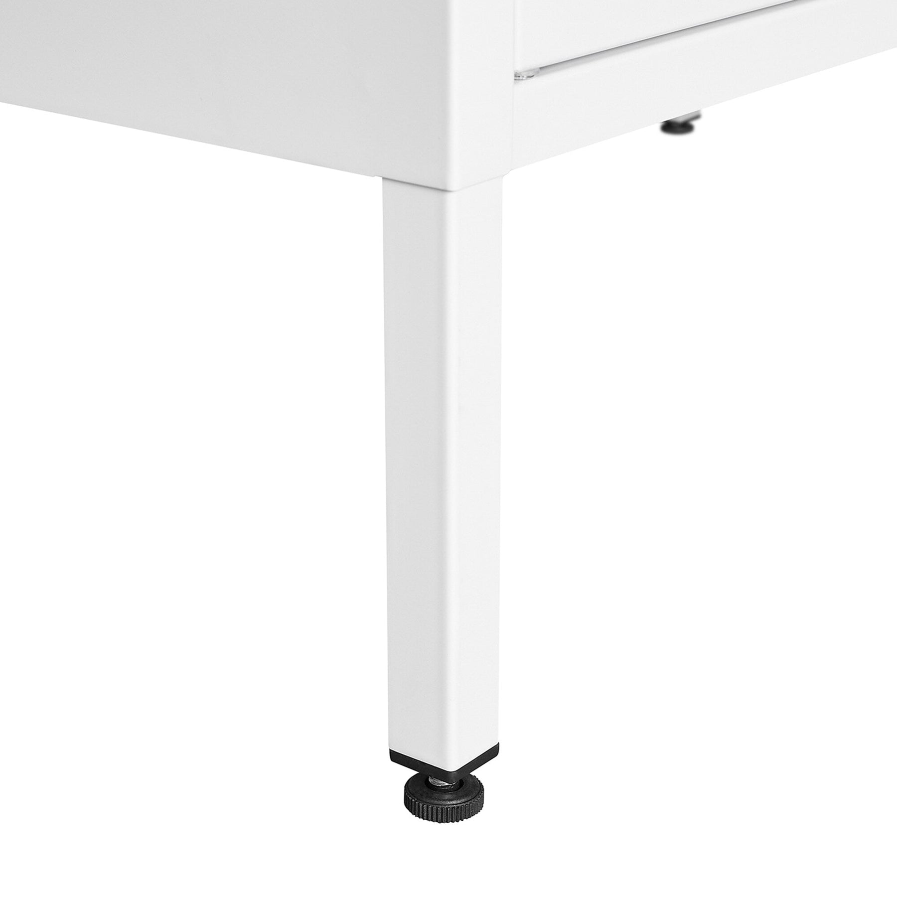 Q: Does the cabinet come with wheels for mobility? A: No, this cabinet is designed with stationary standing feet to ensure stability and ease of cleaning.